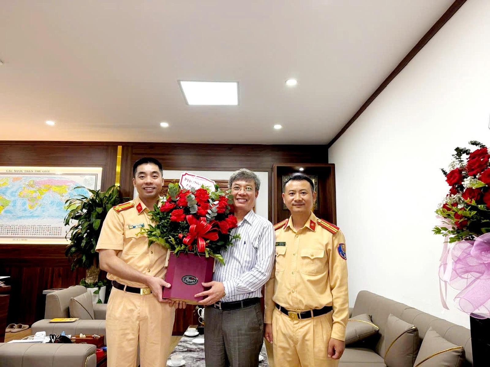 Đại diện Phòng Cảnh sát Giao thông Hà Nội tặng hoa chúc mừng Báo Thanh tra nhân kỷ niệm 100 năm Ngày báo chí cách mạng Việt Nam. Ảnh: Hà Tuấn