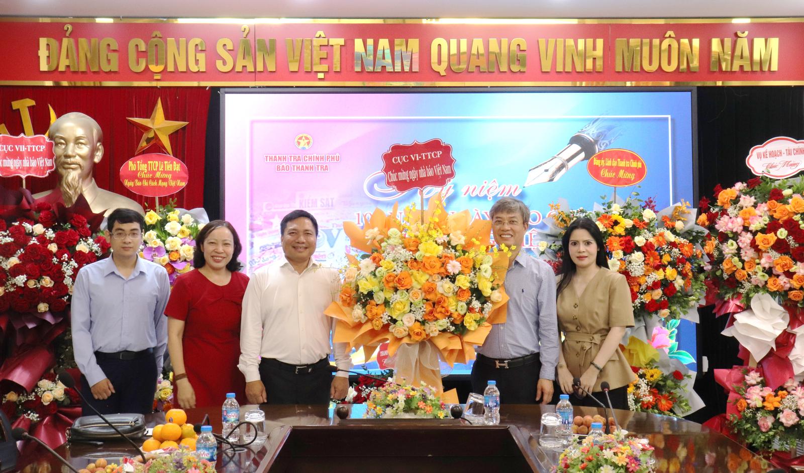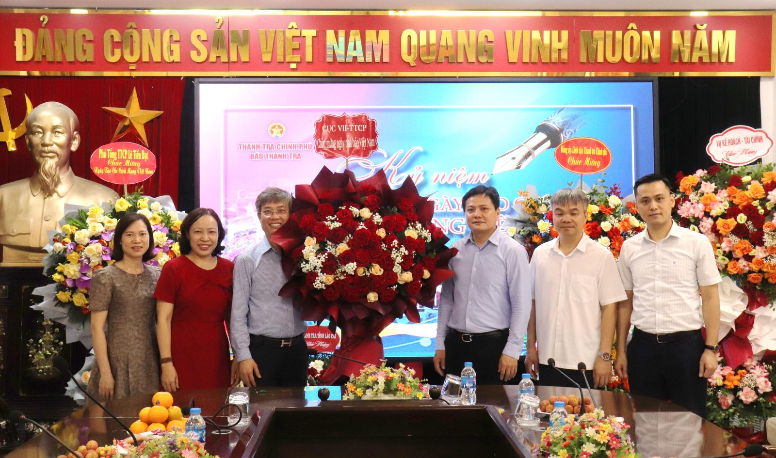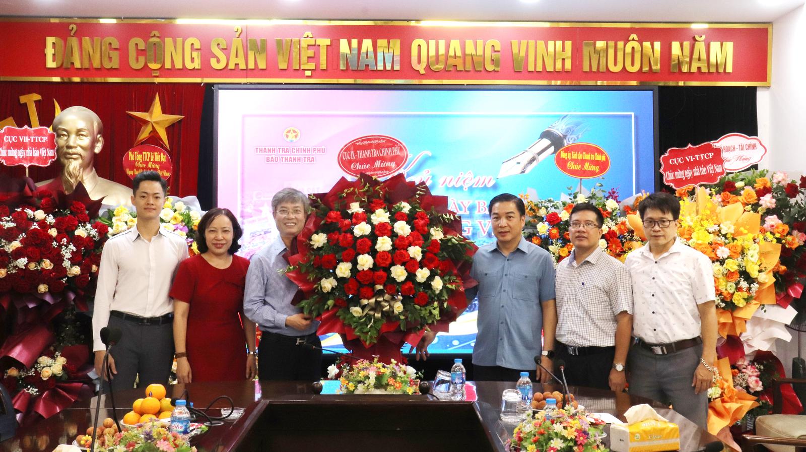 Phó Tổng Thanh tra Chính phủ Lê Sỹ Bảy (thứ 6 từ trái sang) chúc mừng Báo Thanh tra nhân kỷ niệm 100 năm Ngày Báo chí cách mạng Việt Nam. Ảnh: Hoàng Nam