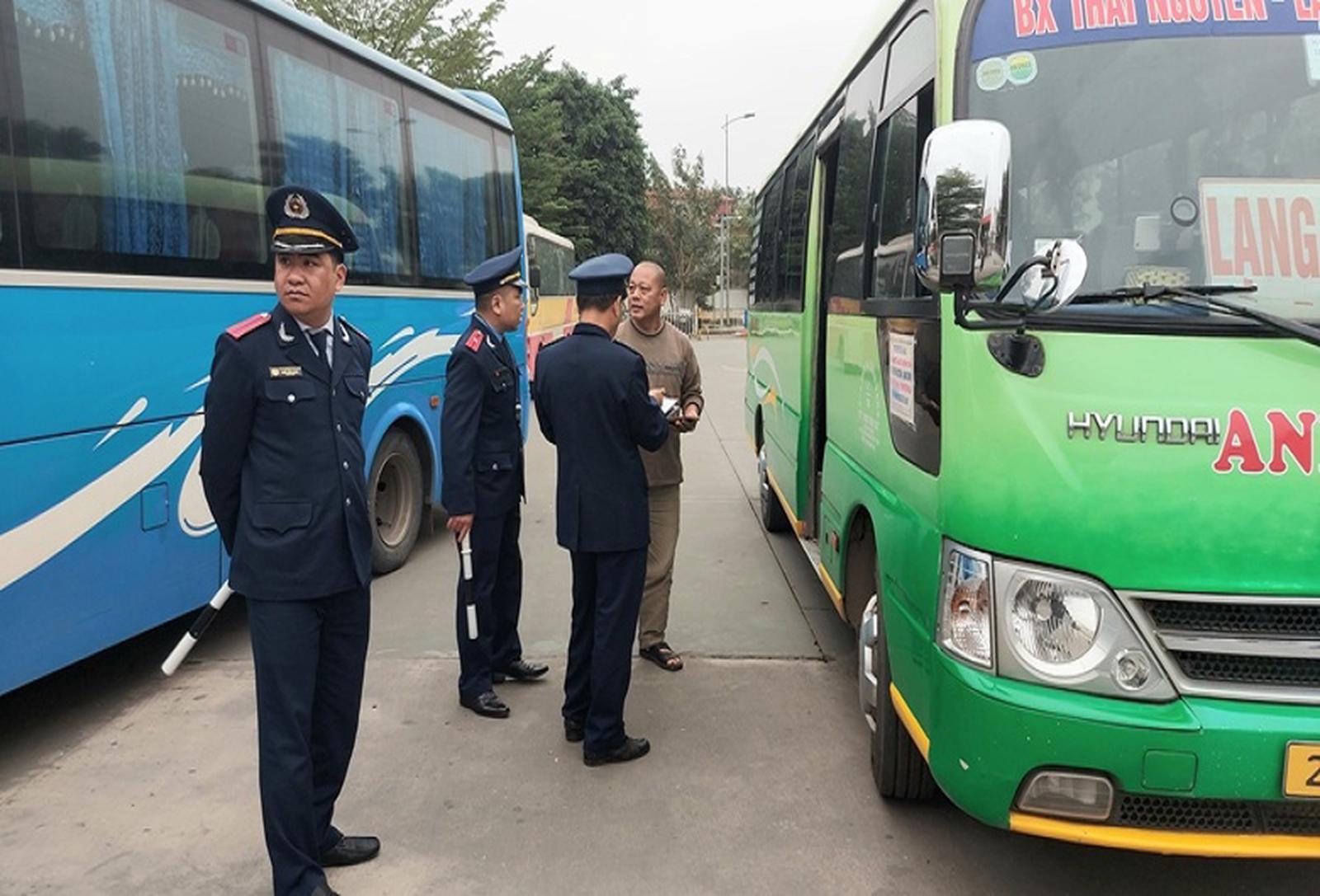 Lực lượng thanh tra giao thông kiểm tra phương tiện chở khách. Ảnh: TQ