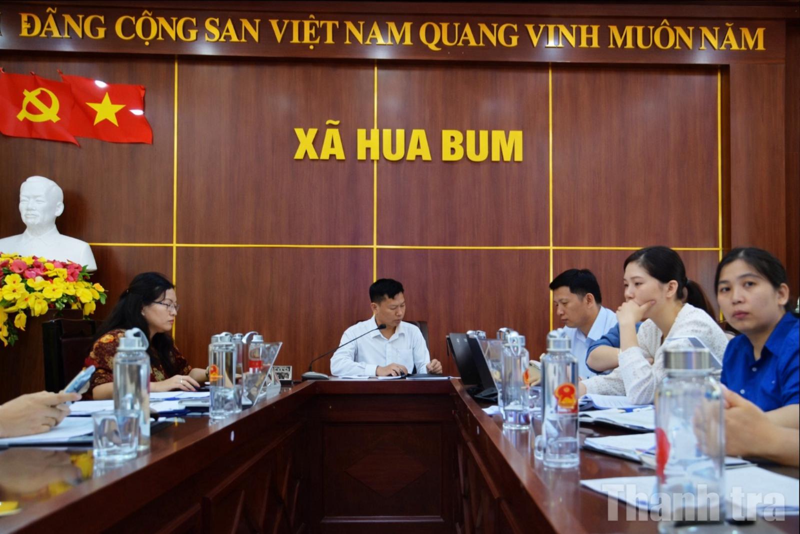 Hội nghị công bố quyết định thanh tra, điểm cầu xã Hua Bum. Ảnh: Bùi Bình