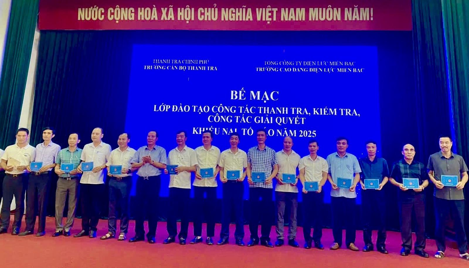 Chiều ngày 12/9, Trường Cán bộ Thanh tra phối hợp với Tổng Công ty Điện lực Miền Bắc đã tổ chức lễ bế giảng lớp bồi dưỡng tạo công tác thanh tra, kiểm tra và giải quyết khiếu nại, tố cáo năm 2025.