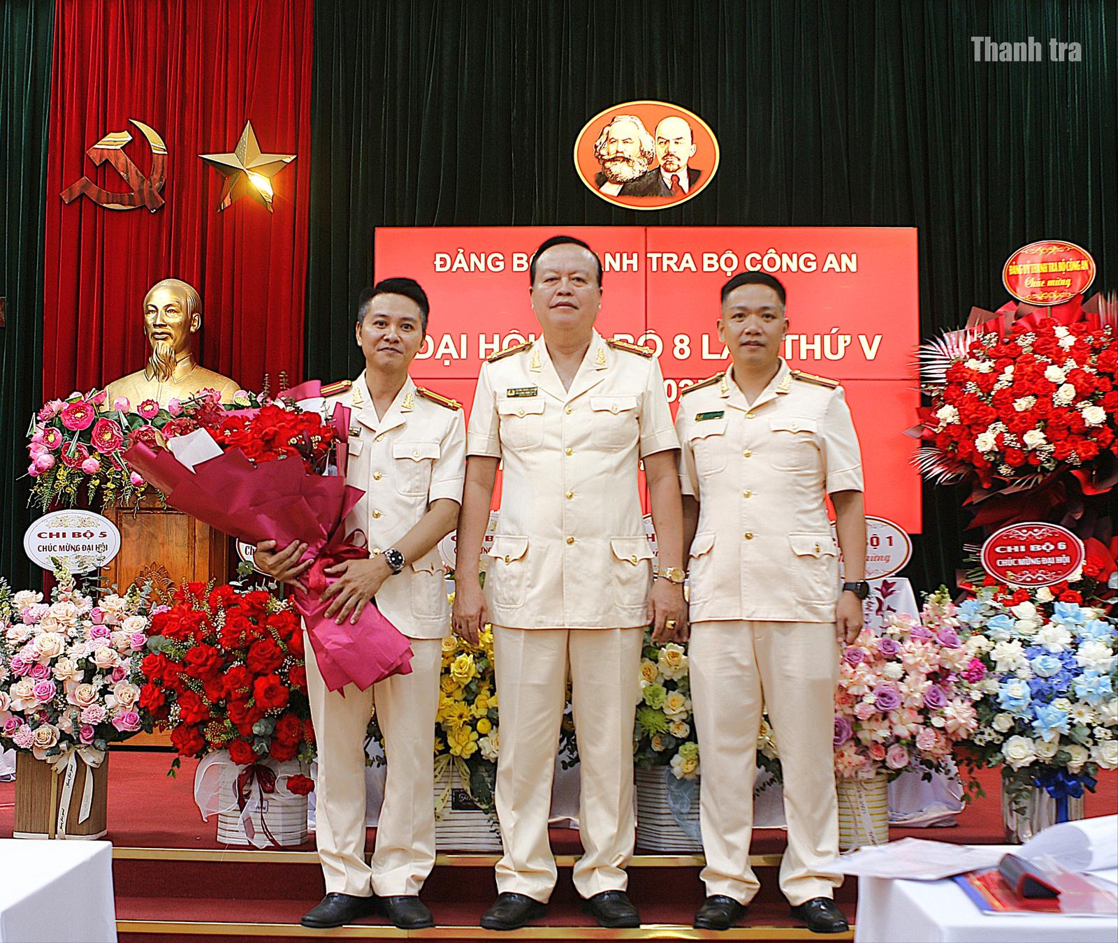 Đại tá Lương Ngọc Dùng, Phó Chánh Thanh tra Bộ công an tặng hoa, chúc mừng Chi ủy Chi bộ 8, nhiệm kỳ 2025 - 2027. Ảnh: Hoàng Nam