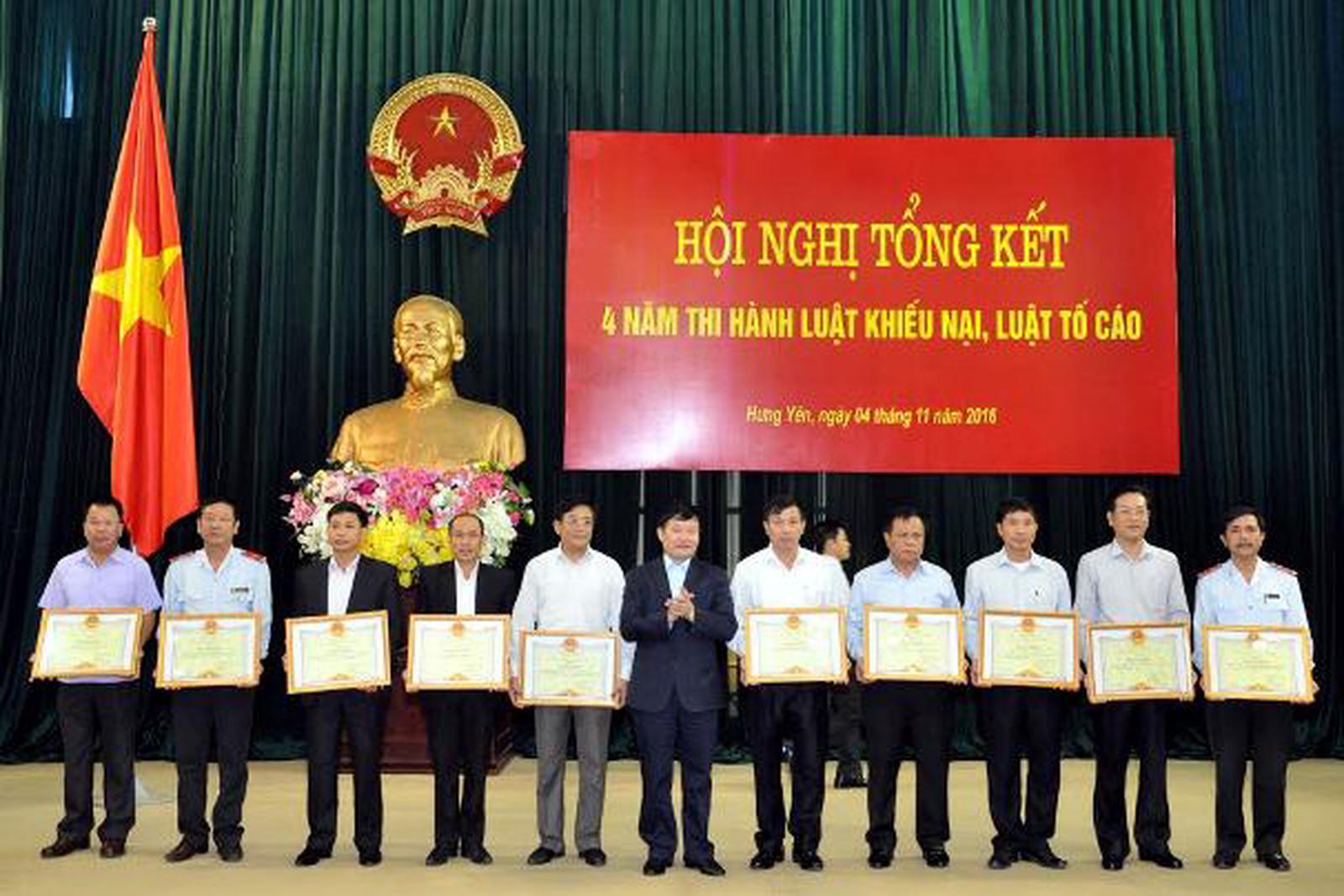 Nhân dịp này, UBND tỉnh Hưng Yên đã tặng Bằng khen cho 11 tập thể và 16 cá nhân có thành tích xuất sắc trong công tác giải quyết khiếu nại, tố cáo.