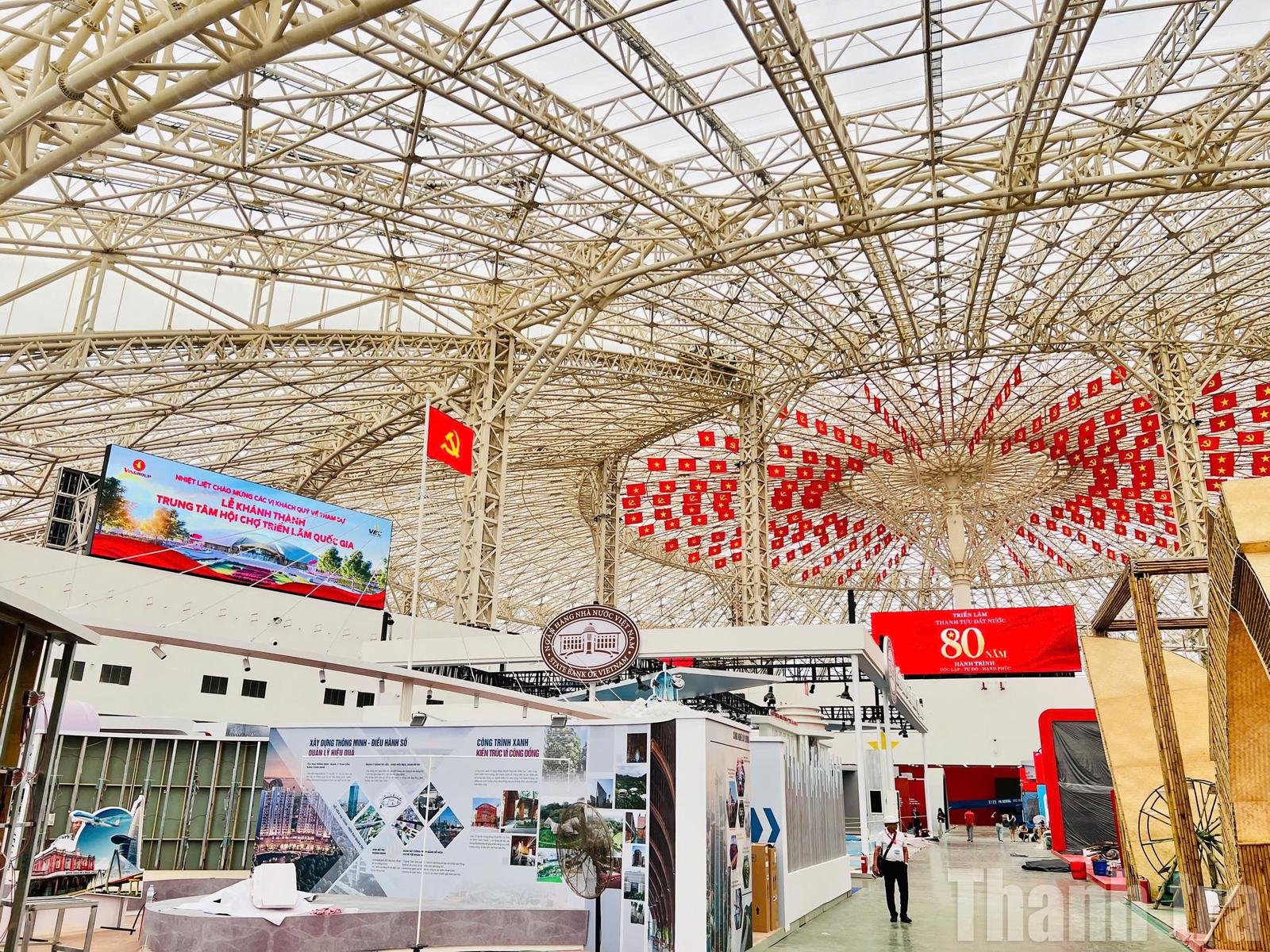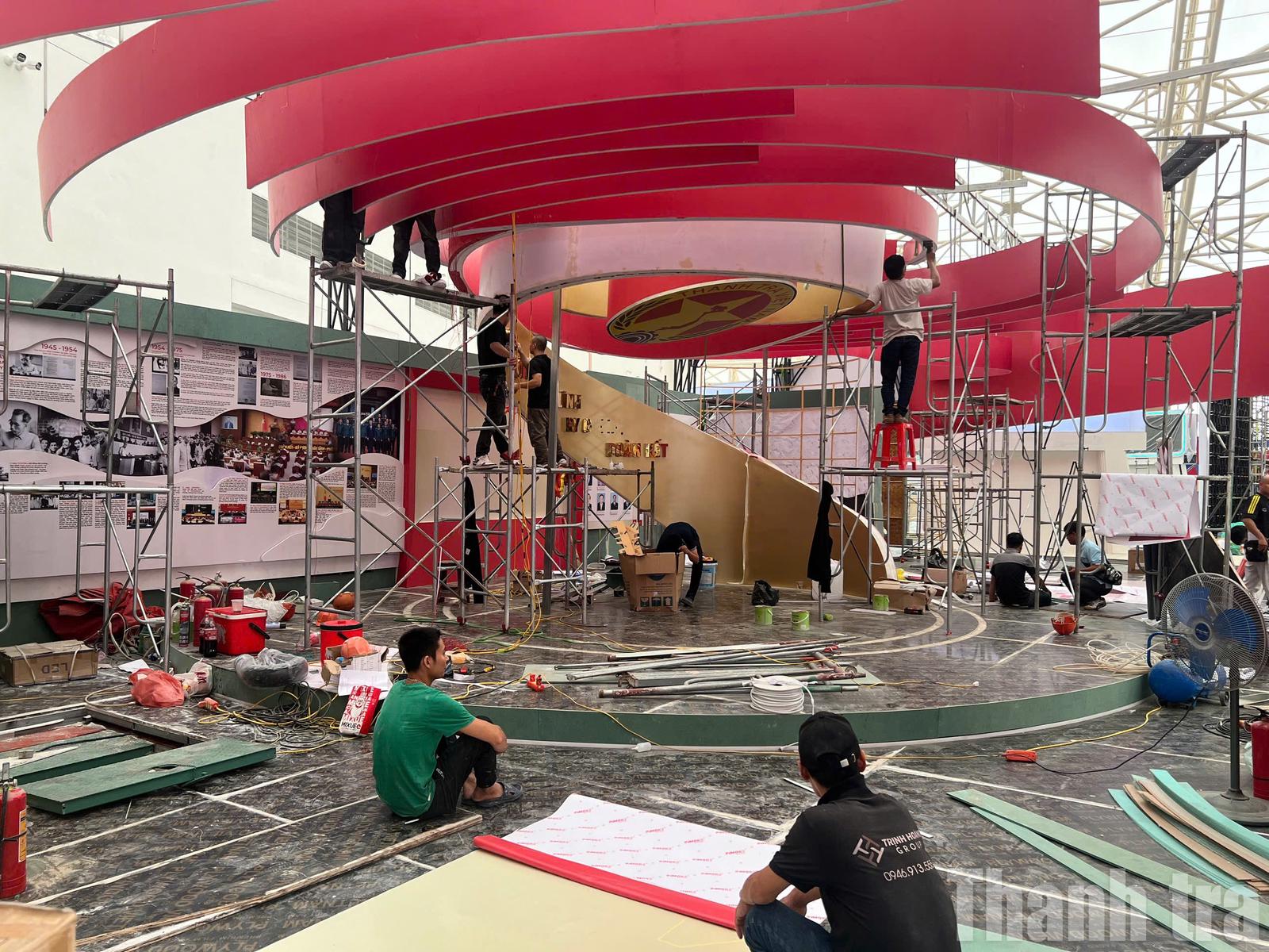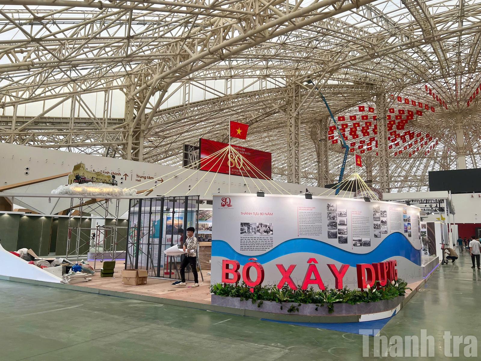 Không khí khẩn trương chuẩn bị tại khu vực triển lãm thành tựu kinh tế - xã hội nhân kỷ niệm 80 năm Quốc khánh (2/9/1945 - 2/9/2025). Ảnh: Chính Bình