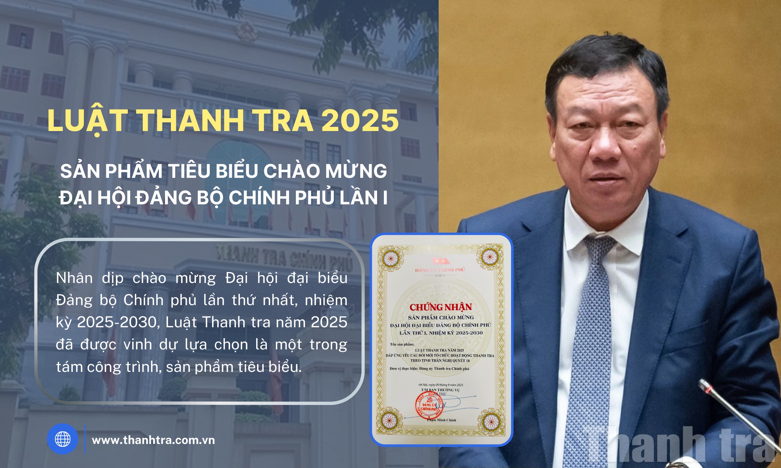 Ngay từ đầu nhiệm kỳ 2020–2025, Ban Cán sự Đảng (nay là Ban Thường vụ Đảng ủy) Thanh tra Chính phủ đã xác định rõ: quán triệt, cụ thể hóa các nghị quyết, kết luận của Trung ương, Bộ Chính trị vào công tác xây dựng pháp luật là phương hướng xuyên suốt, có ý nghĩa chiến lược lâu dài. Đảng ủy và lãnh đạo Thanh tra Chính phủ đã ban hành và triển khai đồng bộ các chương trình, kế hoạch hành động, coi xây dựng pháp luật là nhiệm vụ trọng tâm; đồng thời tập trung kiện toàn tổ chức bộ máy làm công tác pháp chế, bổ sung nguồn nhân lực, đổi mới phương pháp, nâng cao chất lượng tham mưu, soạn thảo văn bản.