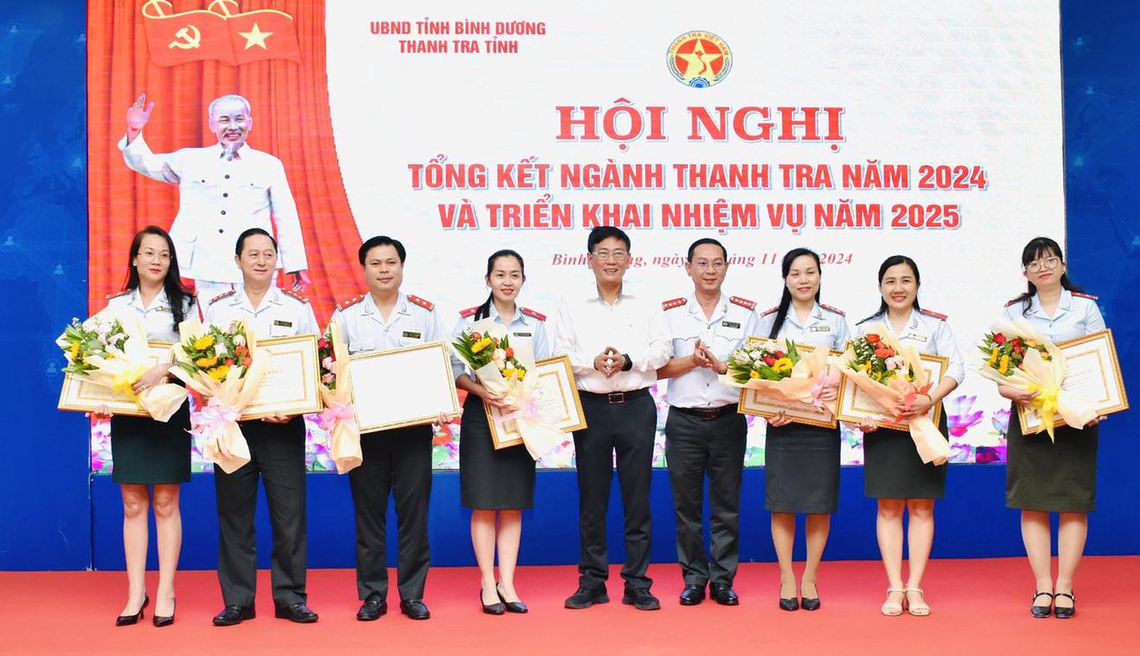 Cùng với đó, Thanh tra Chính phủ đã tặng bằng khen cho 3 cá nhân và 1 tập thể; UBND tỉnh Bình Dương cũng tặng bằng khen cho 3 tập thể và 6 cá nhân hoàn thành xuất sắc nhiệm vụ năm 2024.