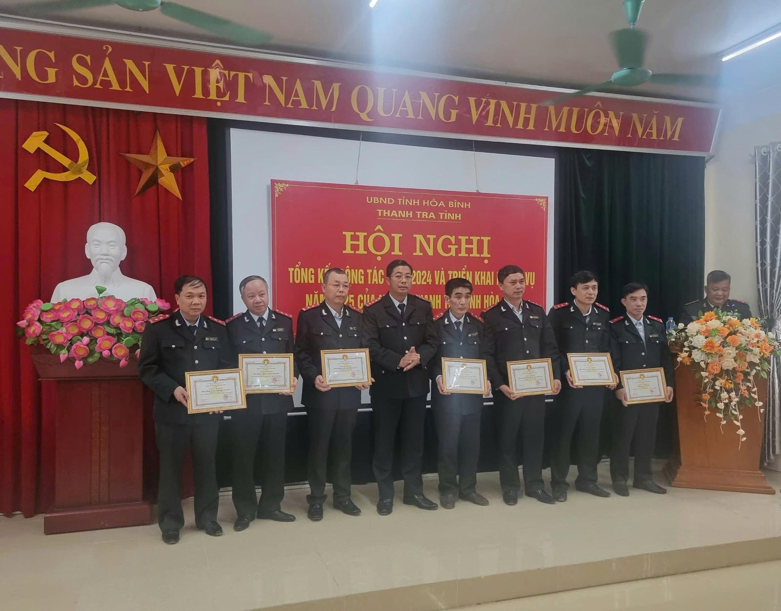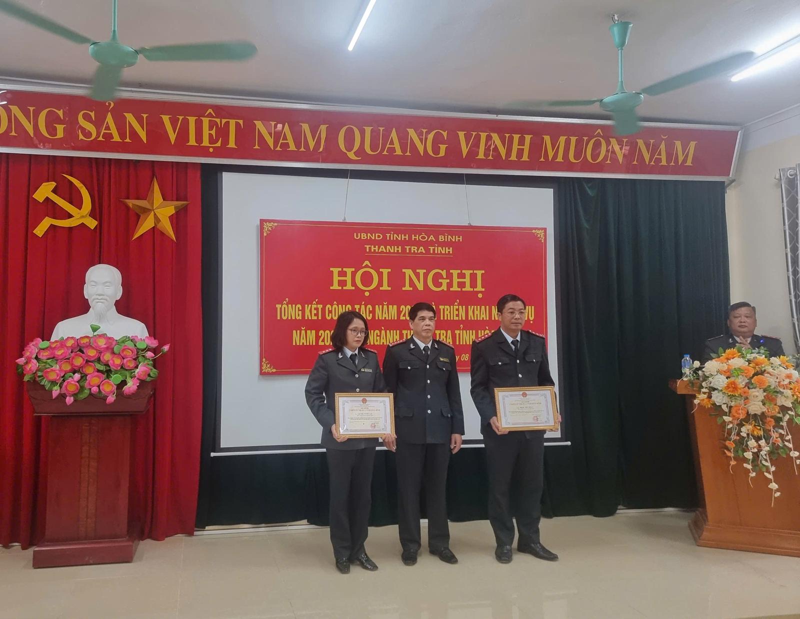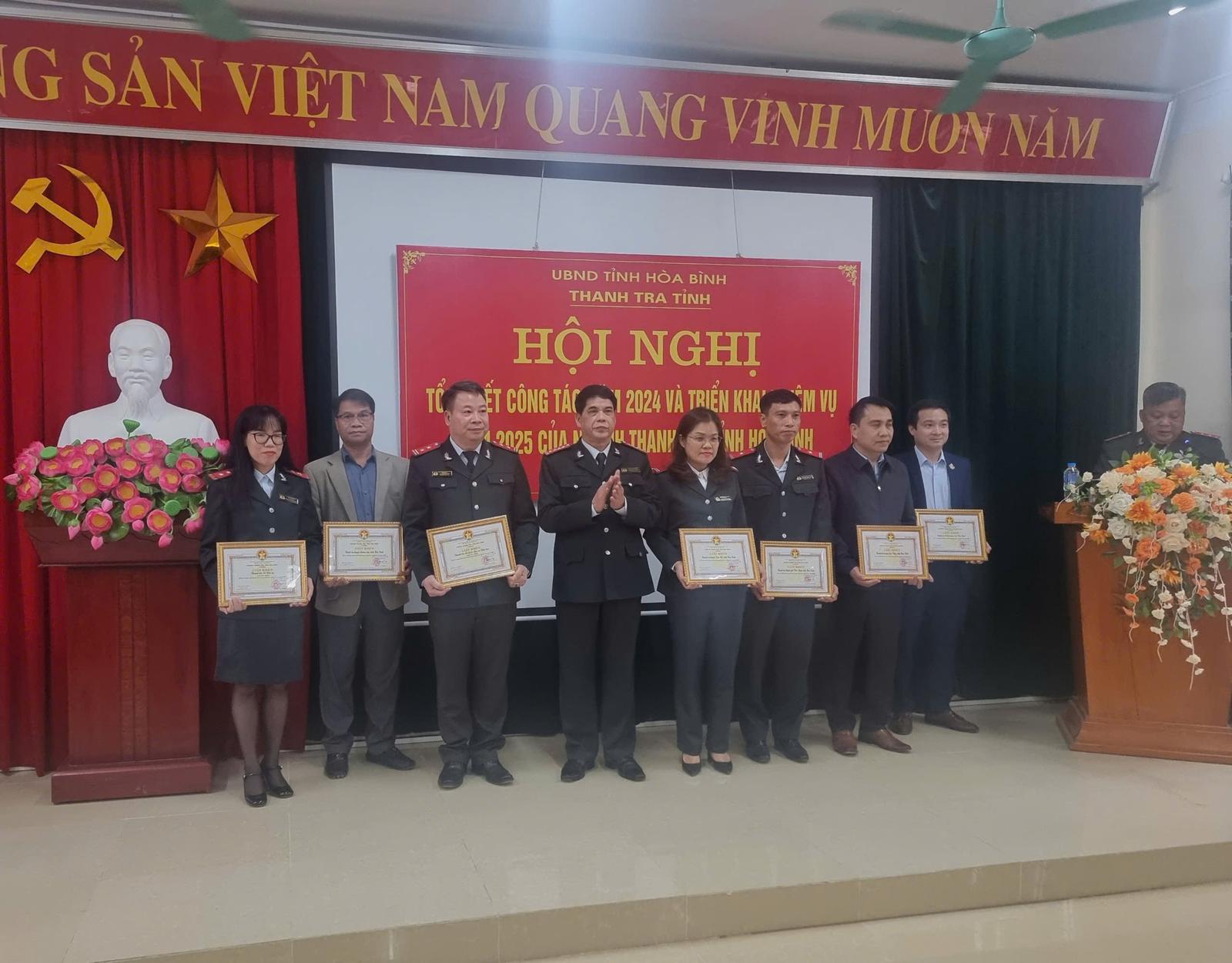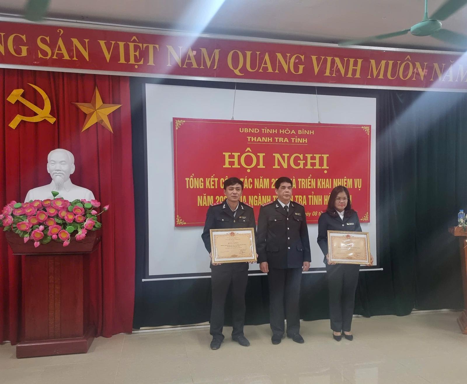Nhân dịp này, nhiều tập thể, cá nhân có những thành tích tiêu biểu, xuất sắc đã được nhận danh hiệu Chiến sĩ thi đua tỉnh Hoà Bình; Bằng khen của Tổng Thanh tra Chính phủ; Giấy khen của Chánh Thanh tra tỉnh Hoà Bình./.