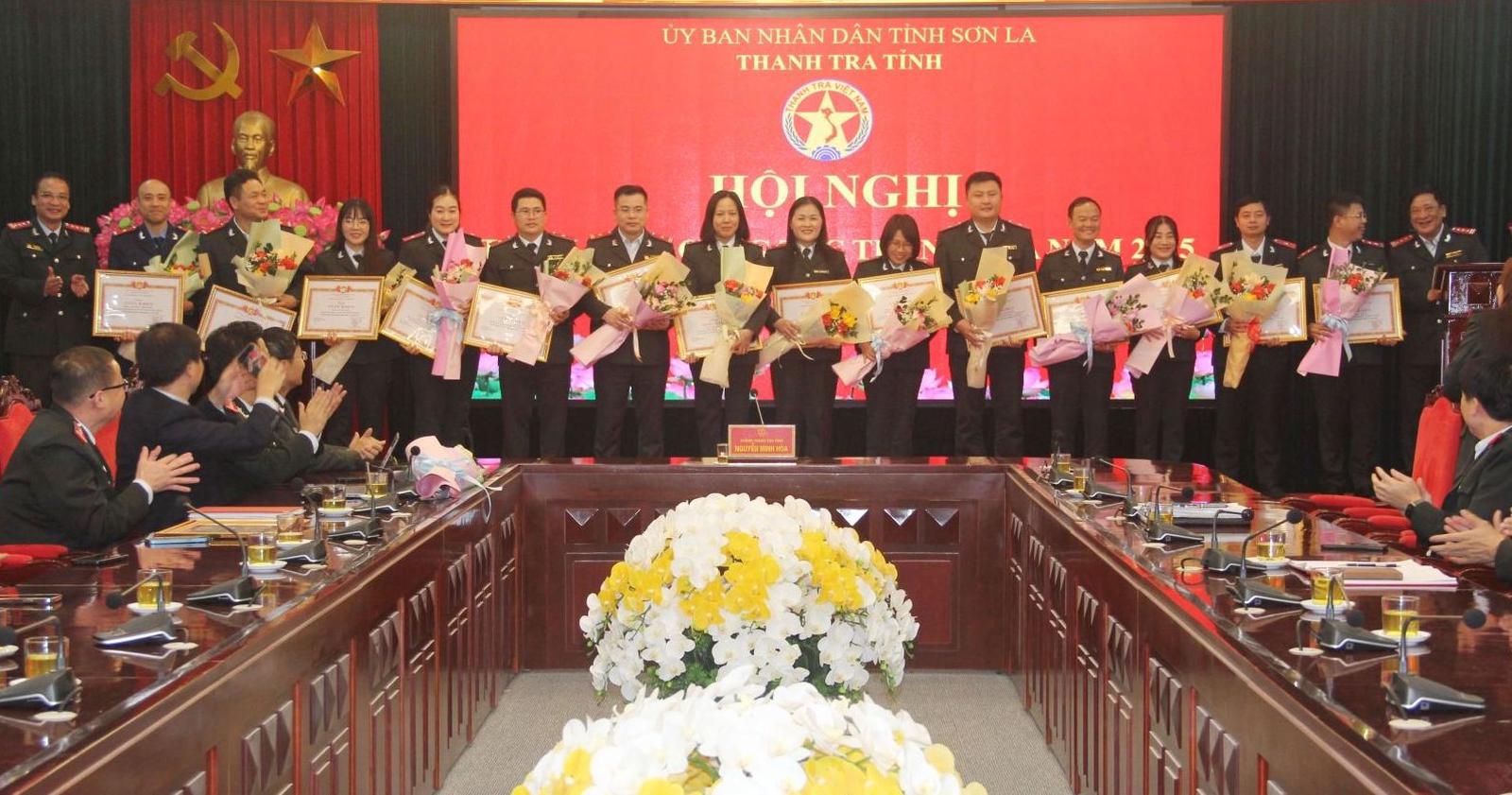 Nhiều tập thể, cá nhân ngành Thanh tra tỉnh Sơn La được Chánh Thanh tra tỉnh Sơn La tặng Giấy khen cho thành tích xuất sắc năm 2024. Ảnh: Thanh Huyền