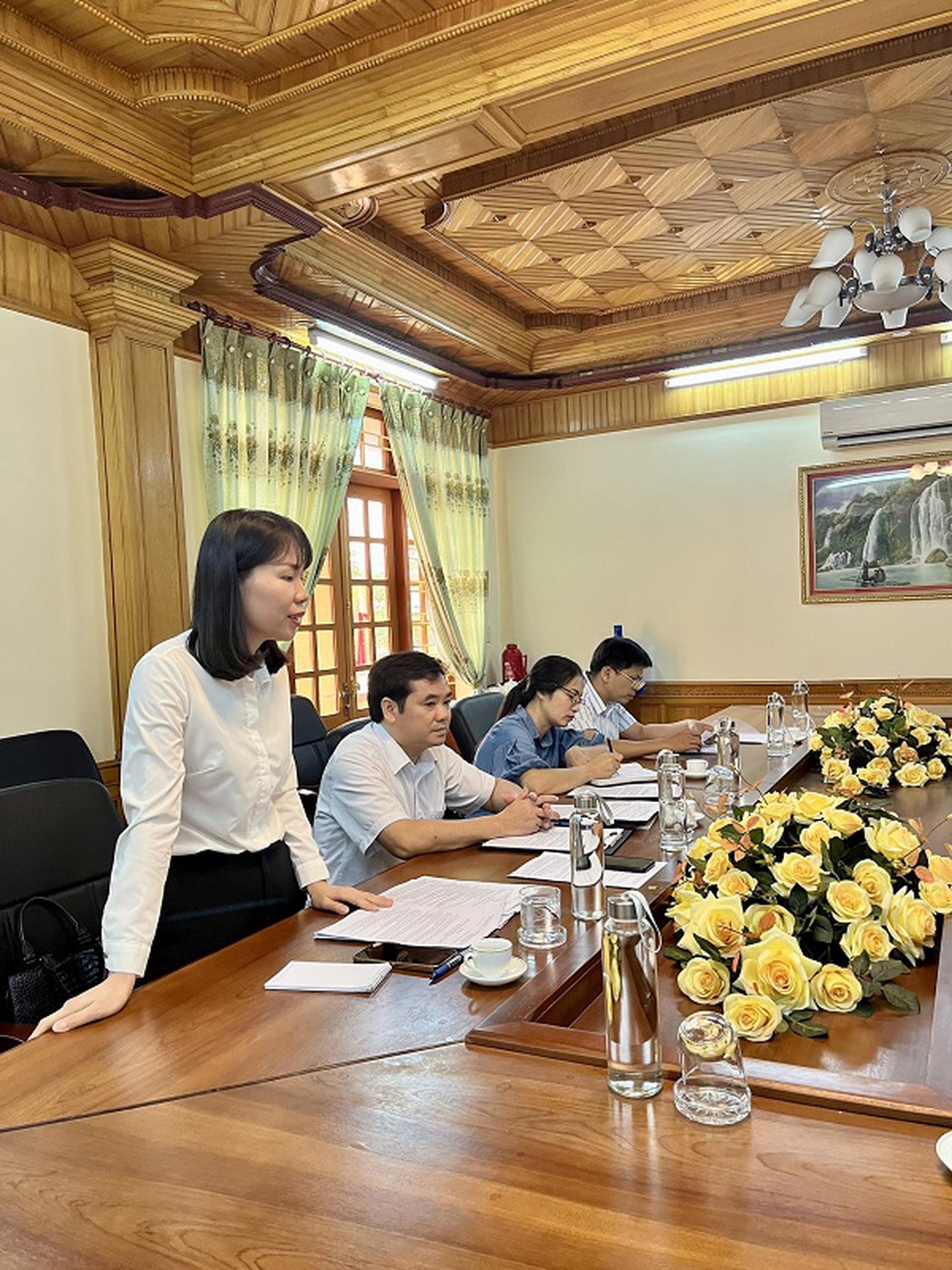 Bà Khánh Thị Xuyến, Chánh Thanh tra tỉnh Tuyên Quang, Trưởng đoàn công tác phát biểu tại hội nghị. Ảnh: Bùi Bình