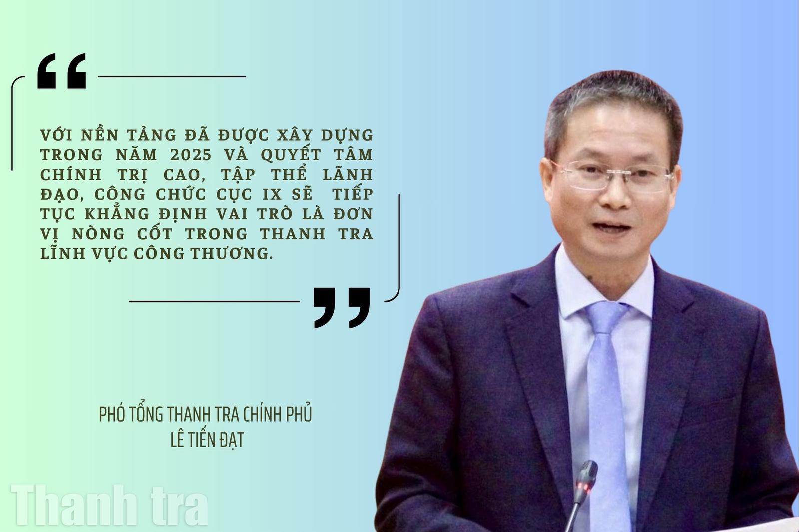 Phó Tổng Thanh tra Lê Tiến Đạt bày tỏ kì vọng, năm 2026, Cục IX tiếp tục khẳng định vai trò là đơn vị nòng cốt trong thanh tra lĩnh vực công thương, đóng góp tích cực vào thành công chung của ngành Thanh tra và sự phát triển bền vững của đất nước.
