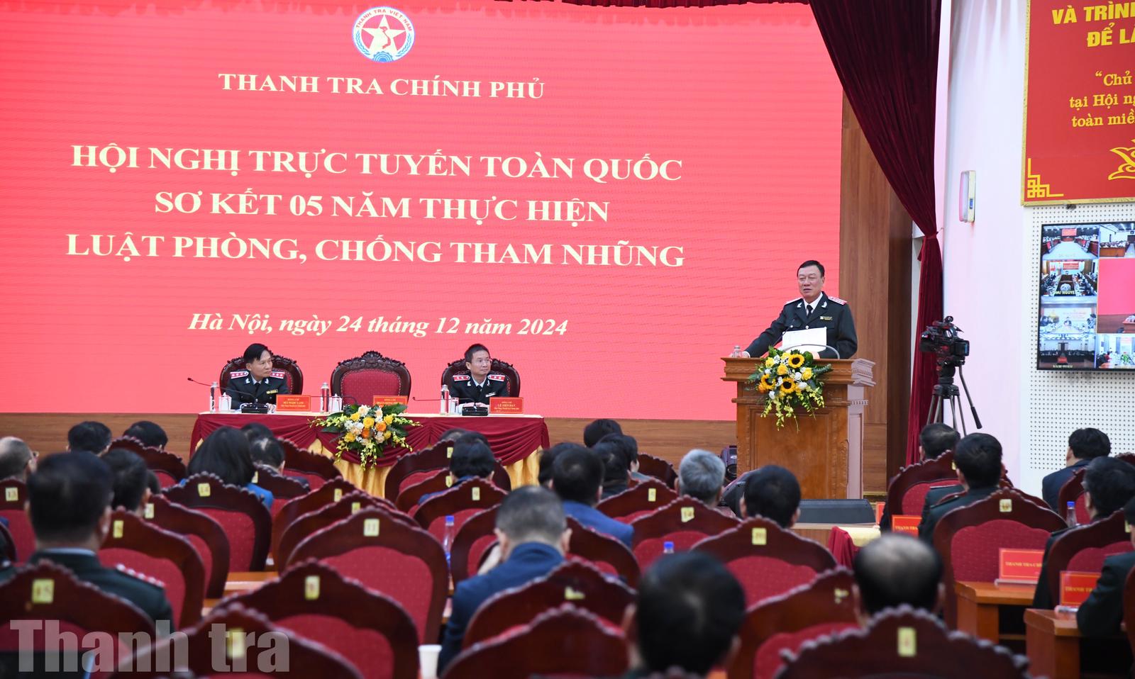 Thanh tra Chính phủ tổ chức Hội nghị trực tuyến toàn quốc sơ kết 5 năm thực hiện Luật Phòng, chống tham nhũng. Ảnh: Minh Nguyệt