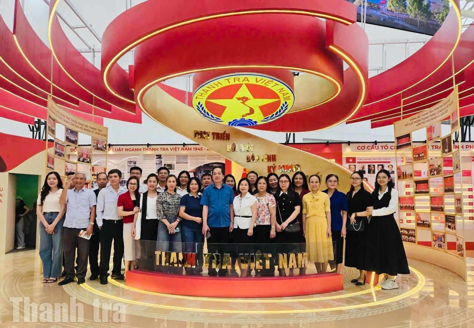 Tập thể lãnh đạo, cán bộ, giảng viên Trường Cán bộ Thanh tra chụp ảnh lưu niệm tại gian trưng bày. Ảnh: H.L