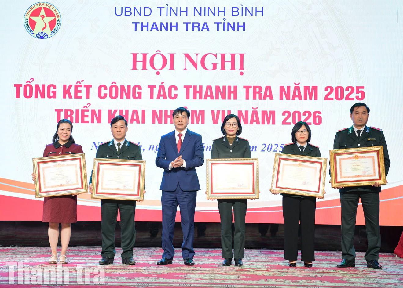 Năm 2025, toàn ngành có 110 công chức, người lao động đạt danh hiệu “Chiến sĩ thi đua cơ sở”, 135 người đạt danh hiệu “Lao động tiên tiến”; 28 cá nhân được Chủ tịch UBND tỉnh tặng bằng khen; nhiều cá nhân được Chủ tịch nước tặng Huân chương Lao động hạng Ba và Thủ tướng Chính phủ tặng bằng khen. Đây là cơ sở cho thấy chất lượng, bản lĩnh và tinh thần trách nhiệm của đội ngũ cán bộ, công chức ngành Thanh tra tỉnh Ninh Bình trong thực hiện nhiệm vụ được giao.