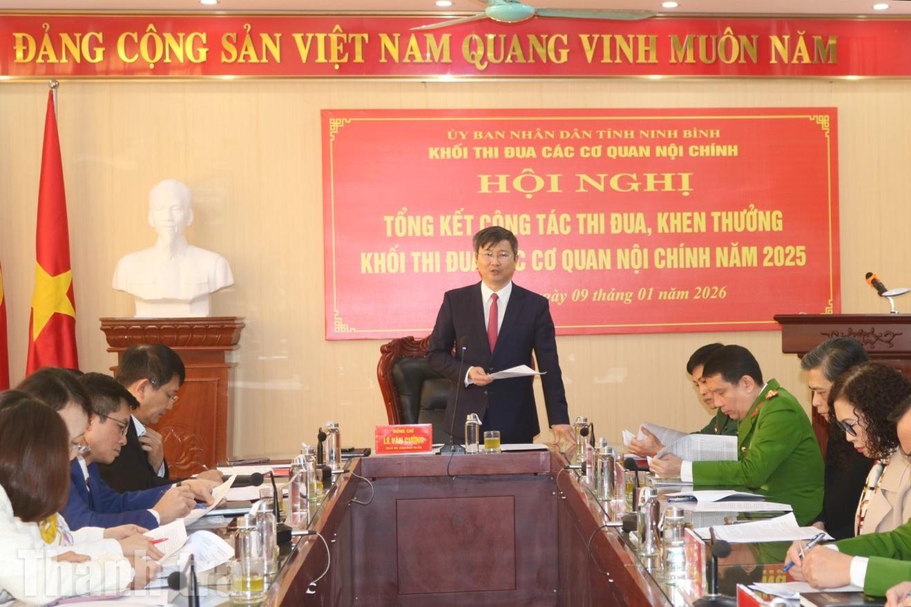 Sáng 9/1, Khối thi đua các cơ quan Nội chính tỉnh Ninh Bình tổ chức Hội nghị tổng kết công tác thi đua, khen thưởng năm 2025; triển khai phương hướng, nhiệm vụ năm 2026. Hội nghị do Thanh tra tỉnh Ninh Bình – đơn vị Trưởng Khối thi đua Nội chính năm 2025 – chủ trì.
