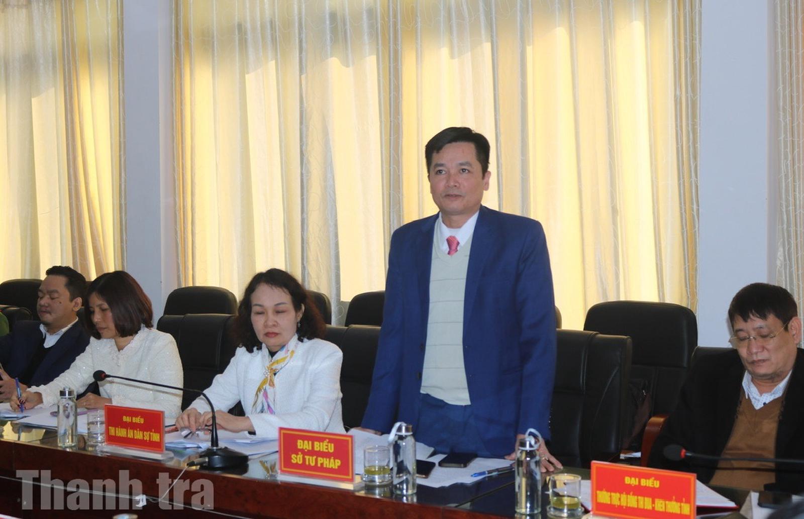 Đại diện Sở Tư pháp tỉnh Ninh Bình phát biểu thảo luận tại hội nghị. Ảnh: Trung Hà