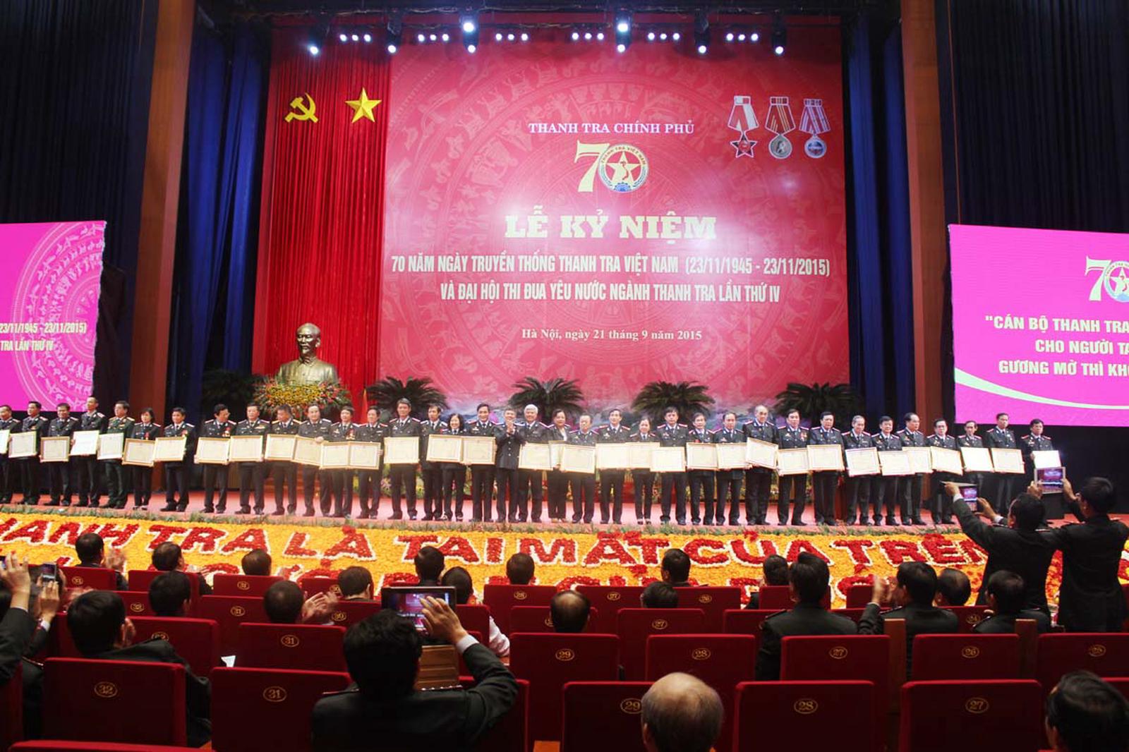 Với những kết quả đạt được, trong 5 năm qua, ngành Thanh tra đã đạt được nhiều thành tích đáng tự hào. Ngành vinh dự được Đảng, Nhà nước tặng thưởng Huân chương Độc lập hạng Nhất. Thanh tra các bộ, ngành, địa phương cũng được Thủ tướng Chính phủ, Chủ tịch nước tặng thưởng nhiều huân, huy chương và Cờ thi đua.