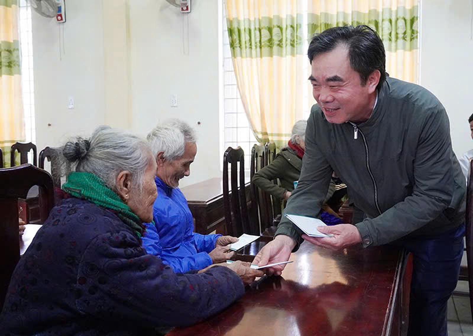Ông Nguyễn Lương Bình thăm chúc Tết người nghèo. Ảnh: DCH