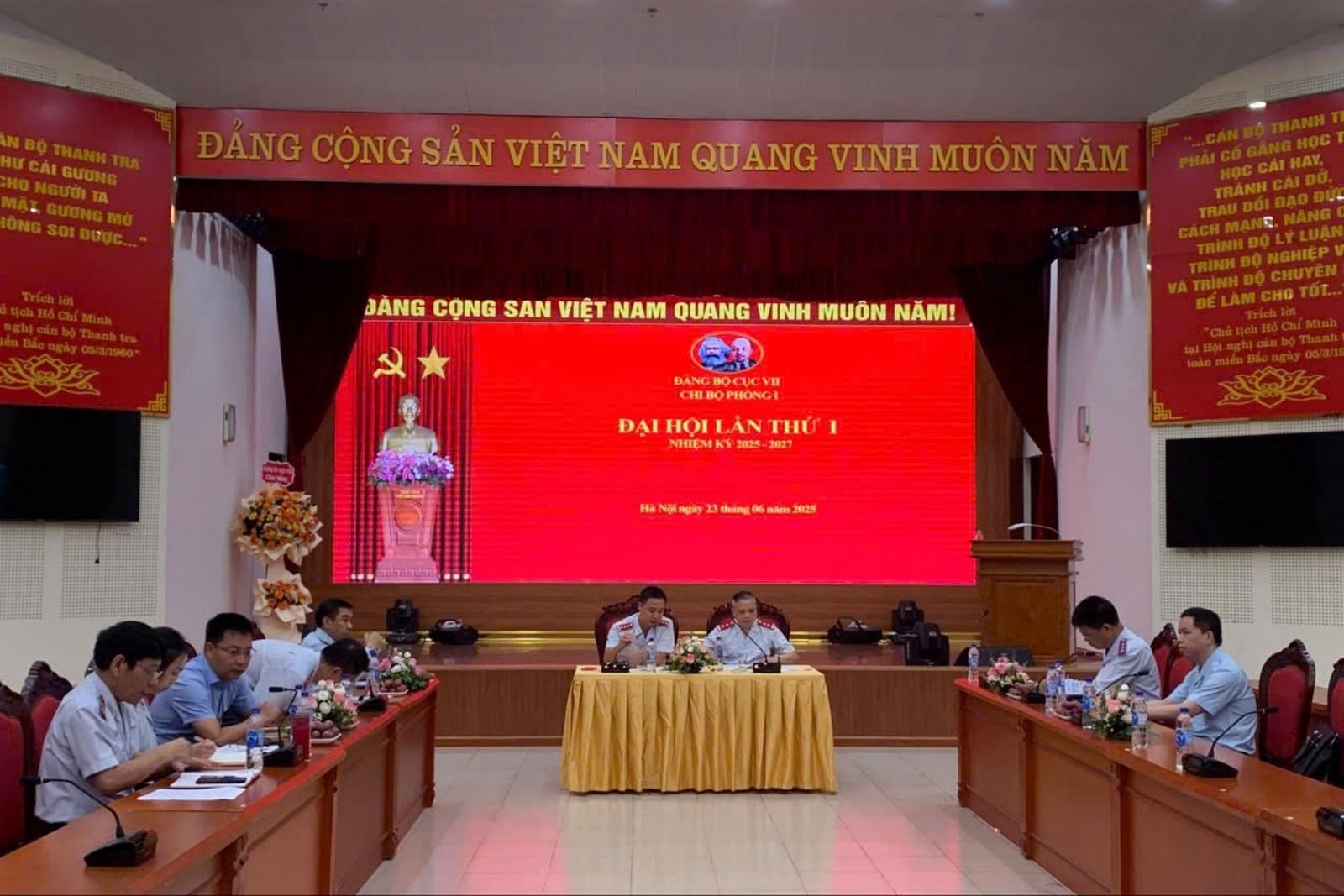 Báo cáo phương hướng, nhiệm vụ, giải pháp của Chi bộ Phòng 1 nhiệm kỳ 2025-2027 tại Đại hội cho thấy, Chi bộ Phòng 1 được thành lập theo Quyết định số 02-QĐ/ĐU ngày 16/6/2025 của Đảng ủy Cục VII, trực thuộc Đảng bộ Cục VII. Hiện tại, Chi bộ có 08 đảng viên, trong đó 08 đảng viên chính thức, có 01 đảng viên nữ.