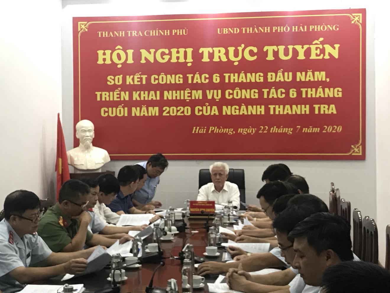 (Thanh tra) - Sáng 22/7, Phó Chủ tịch UBND thành phố Nguyễn Đình Chuyến và đại diện thanh tra các sở, ngành, địa phương tham dự hội nghị trực tuyến sơ kết công tác 6 tháng đầu năm, triển khai nhiệm vụ 6 tháng cuối năm 2020 của Thanh tra Chính phủ.