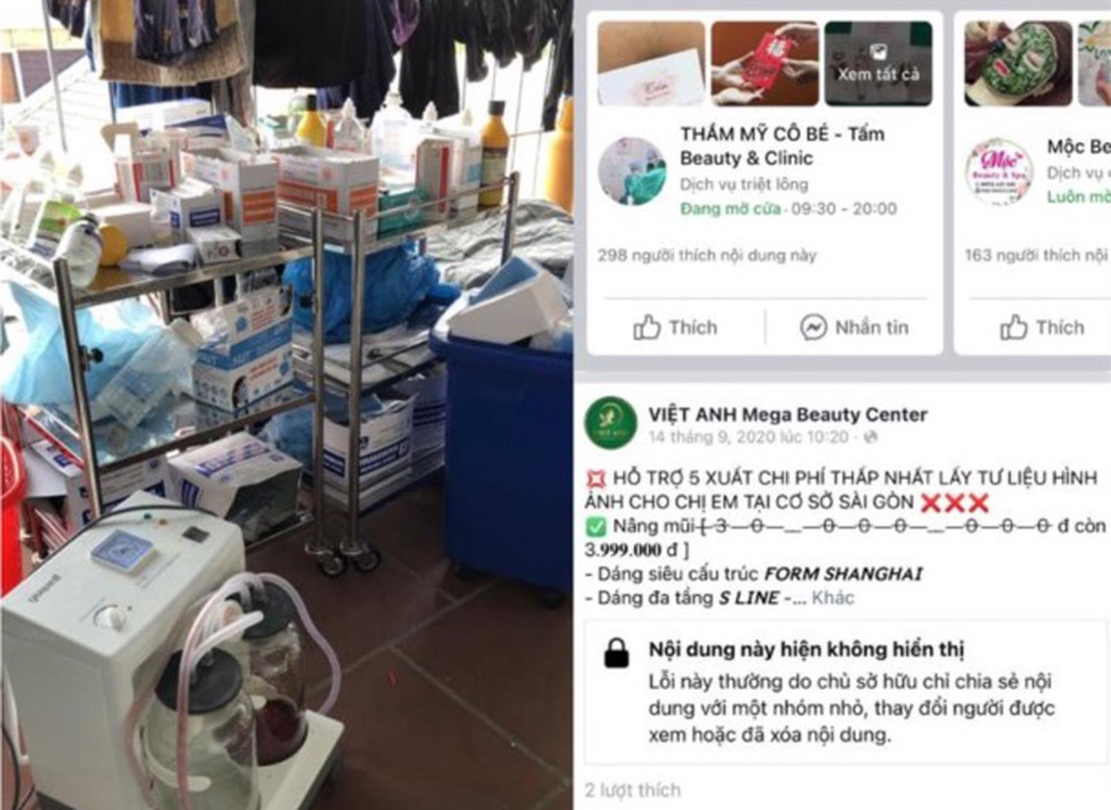 Cơ sở dịch vụ chăm sóc da mặt “Viet Anh Mega Beauty Center” thực hiện phẫu thuật thẩm mỹ không phép. Ảnh: SYT