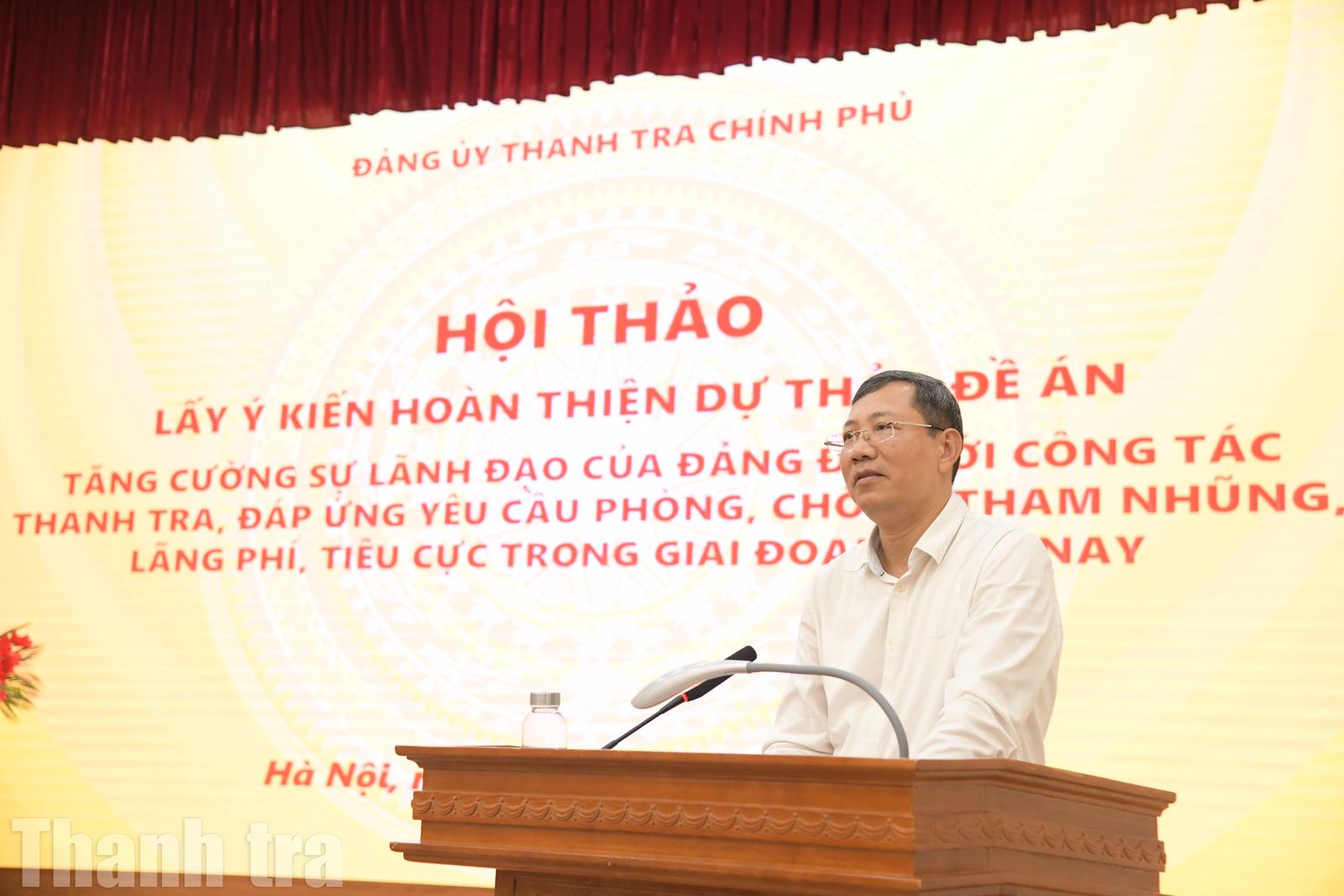 Phó Tổng Thanh tra Chính phủ Lê Tiến Đạt cho rằng những nội dung thảo luận tại hội thảo đã góp phần bổ sung cơ sở lý luận và thực tiễn cho quá trình hoàn thiện đề án, đồng thời làm rõ định hướng đổi mới hoạt động thanh tra dưới sự lãnh đạo của Đảng. Ông đề nghị ban soạn thảo tiếp thu đầy đủ các ý kiến để tiếp tục chỉnh lý, hoàn thiện dự thảo văn kiện, bảo đảm chất lượng và tính khả thi khi triển khai trong thực tiễn.
