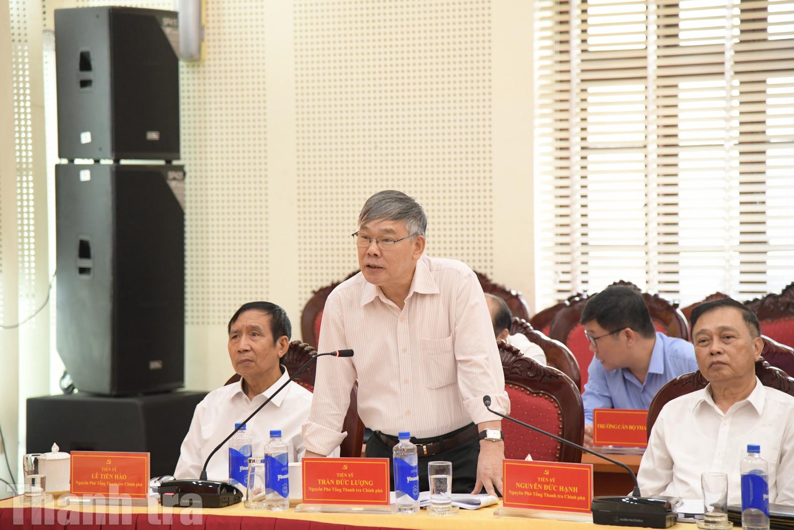Cùng chung quan điểm về yêu cầu đổi mới hoạt động thanh tra, nguyên Phó Tổng Thanh tra Chính phủ Trần Đức Lượng tiếp tục đóng góp nhiều ý kiến nhằm hoàn thiện dự thảo đề án theo hướng toàn diện và phù hợp hơn với thực tiễn.
