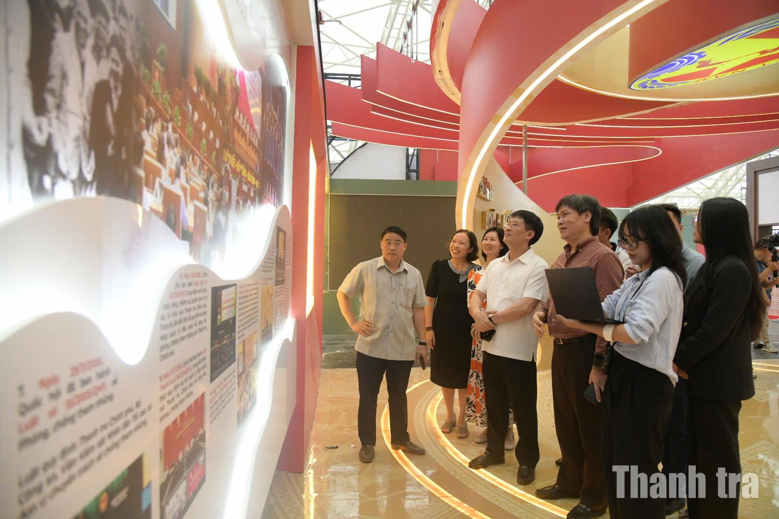 Tại khu vực triển lãm, Phó Tổng Thanh tra Chính phủ Lê Sỹ Bảy đã lắng nghe Ban Chỉ đạo báo cáo chi tiết về tiến độ, phương án bố trí không gian, nội dung trưng bày và các điểm nhấn sẽ được giới thiệu tới công chúng.