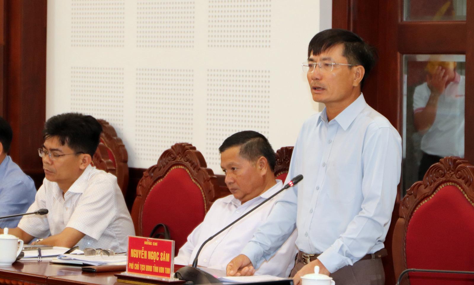 Phó Chủ tịch UBND tỉnh Kon Tum Nguyễn Ngọc Sâm báo cáo với Tổ công tác số 02 của Thanh tra Chính phủ về việc giải quyết các vụ việc KNTC kéo dài trên địa bàn. Ảnh: MT