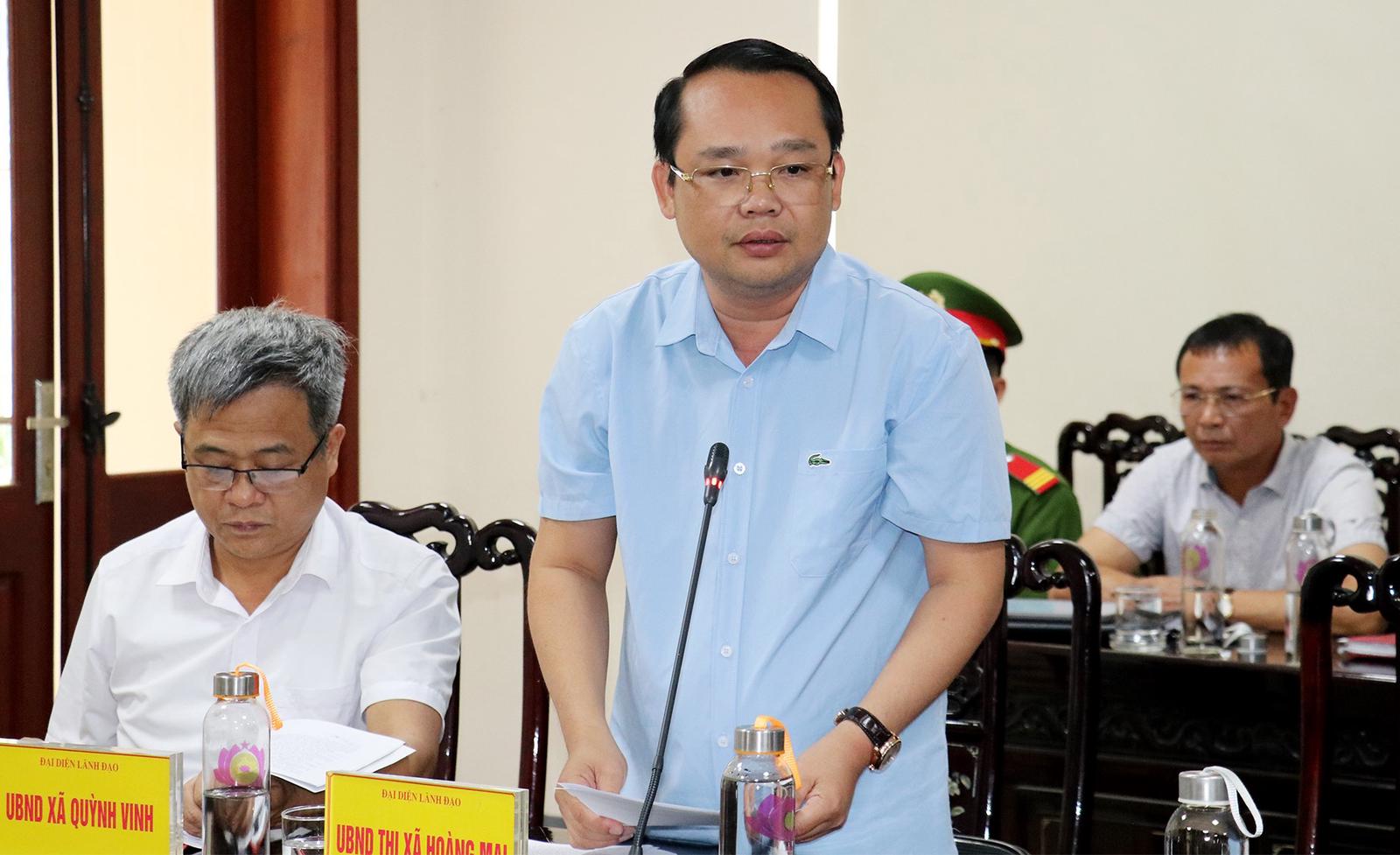 Lãnh đạo UBND thị xã Hoàng Mai báo cáo kết quả giải quyết vụ việc. Ảnh: Xuân Thống