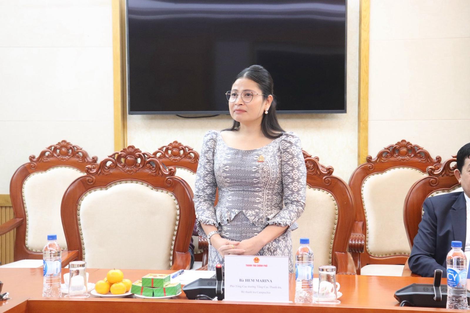 Thay mặt đoàn cán bộ Thanh tra Campuchia, bà Hem Marina, Phó Tổng Cục trưởng Tổng cục Thanh tra, Bộ Thanh tra Campuchia gửi lời cảm ơn sâu sắc đến lãnh đạo Thanh tra Chính phủ Việt Nam vì sự đón tiếp chu đáo, nhiệt tình, nồng hậu.