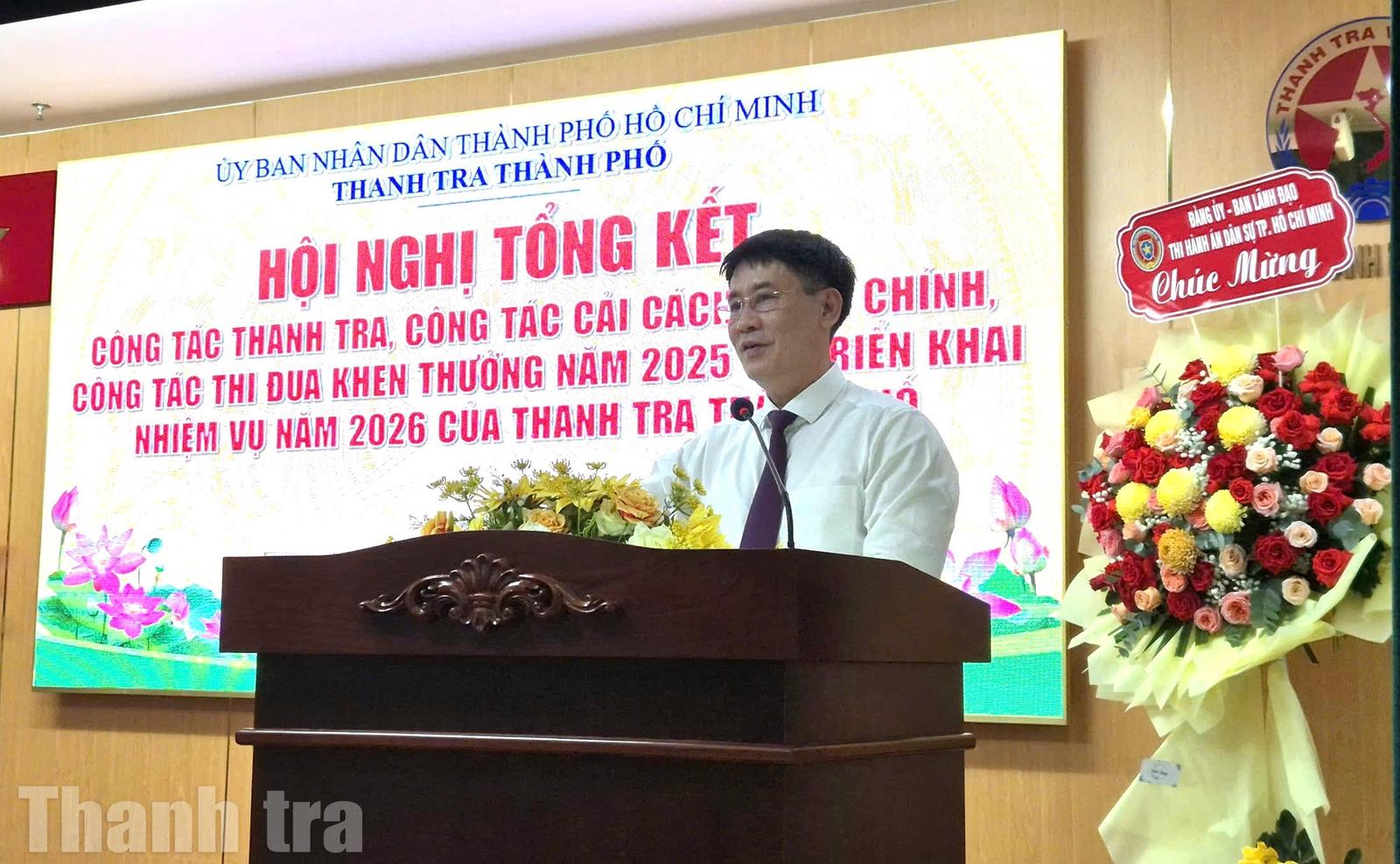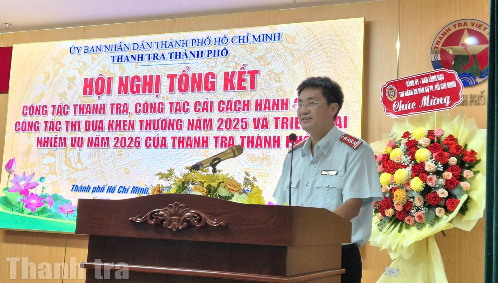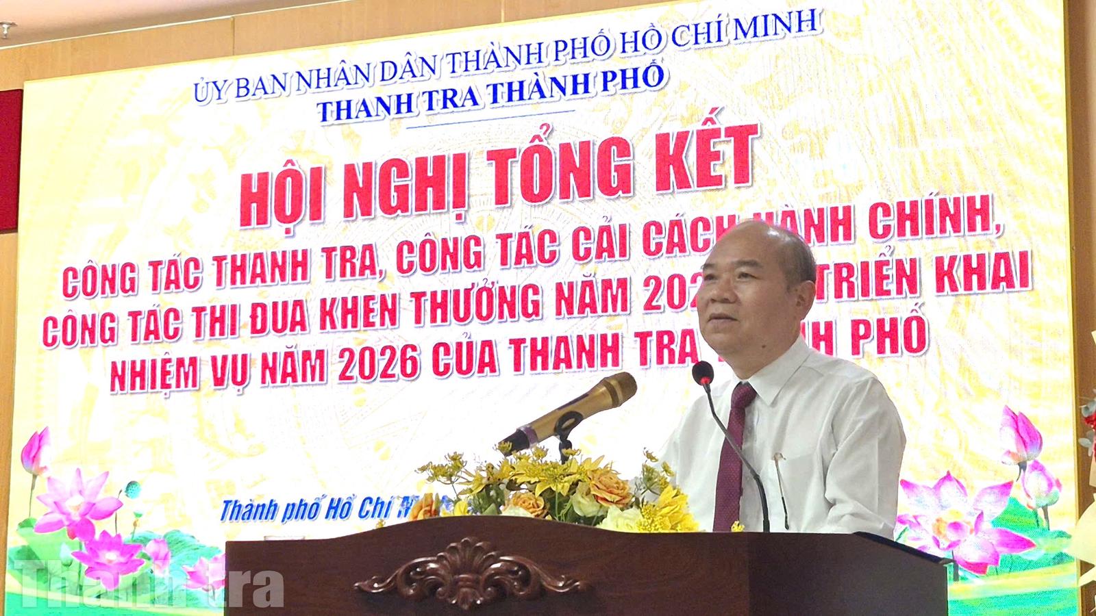 Phó Tổng Thanh tra Chính phủ Lê Sỹ Bảy nhấn mạnh: “Nhiệm vụ đặt ra cho công tác thanh tra của TP Hồ Chí Minh trong năm 2026 và những năm tiếp theo là rất nặng nề nhưng cũng rất vẻ vang. Với truyền thống đoàn kết, bản lĩnh, đổi mới, sáng tạo, với những kết quả toàn diện đã đạt được trong năm 2025, tôi tin tưởng rằng Thanh tra TP Hồ Chí Minh sẽ tiếp tục phát huy ưu điểm, khắc phục hạn chế, chủ động, quyết liệt, hiệu quả hơn nữa, xứng đáng với sự tin tưởng của Trung ương, của Đảng bộ, chính quyền và Nhân dân TP”.