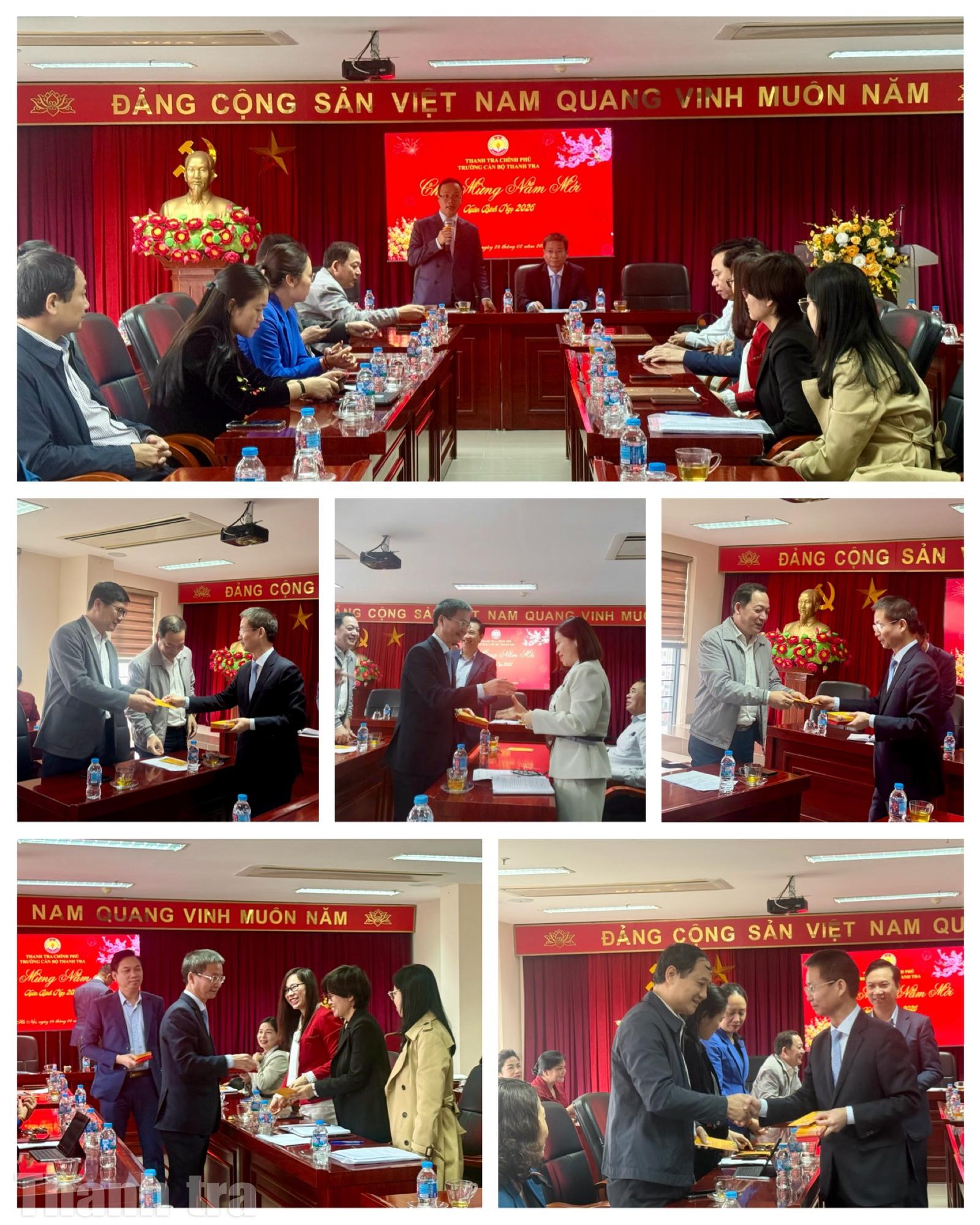 Phó Tổng Thanh tra Lê Tiến Đạt chúc mừng và lì xì đầu năm cho cán bộ, công chức, viên chức Trường Cán bộ Thanh tra. Ảnh: TH