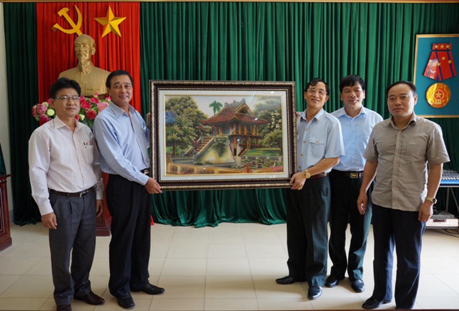 Thanh tra tỉnh Sơn La đón nhận món quà lưu niệm từ Phó Tổng Thanh tra Nguyễn Đức Hạnh. Ảnh: Hoàng Long