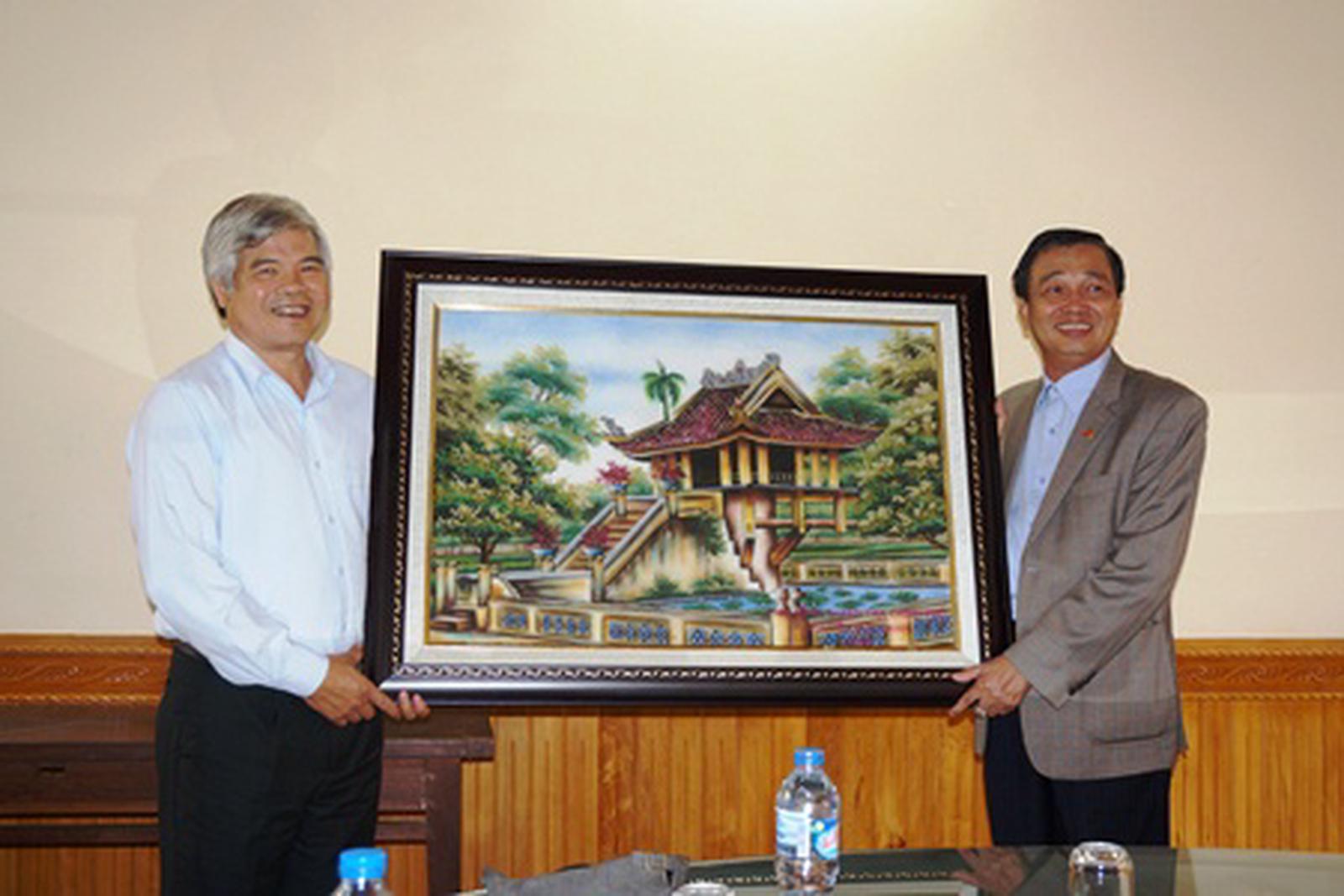 Chánh Thanh tra tỉnh Nam Định Nguyễn Khắc Chanh nhận quà lưu niệm của Phó Tổng Thanh tra. Ảnh: Việt Hưng