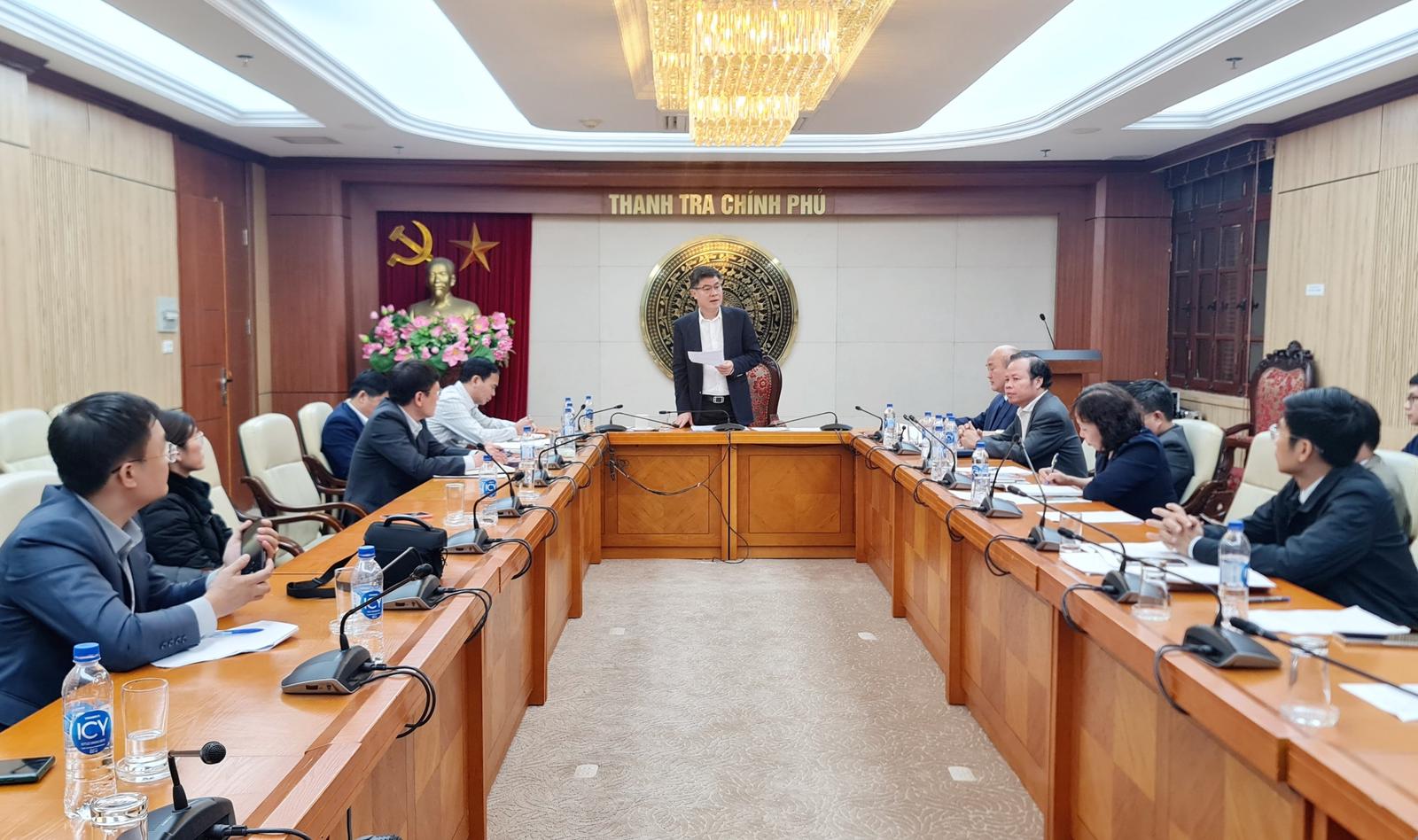 Phó Tổng Thanh tra Nguyễn Văn Cường phát biểu tại cuộc họp. Ảnh: TH
