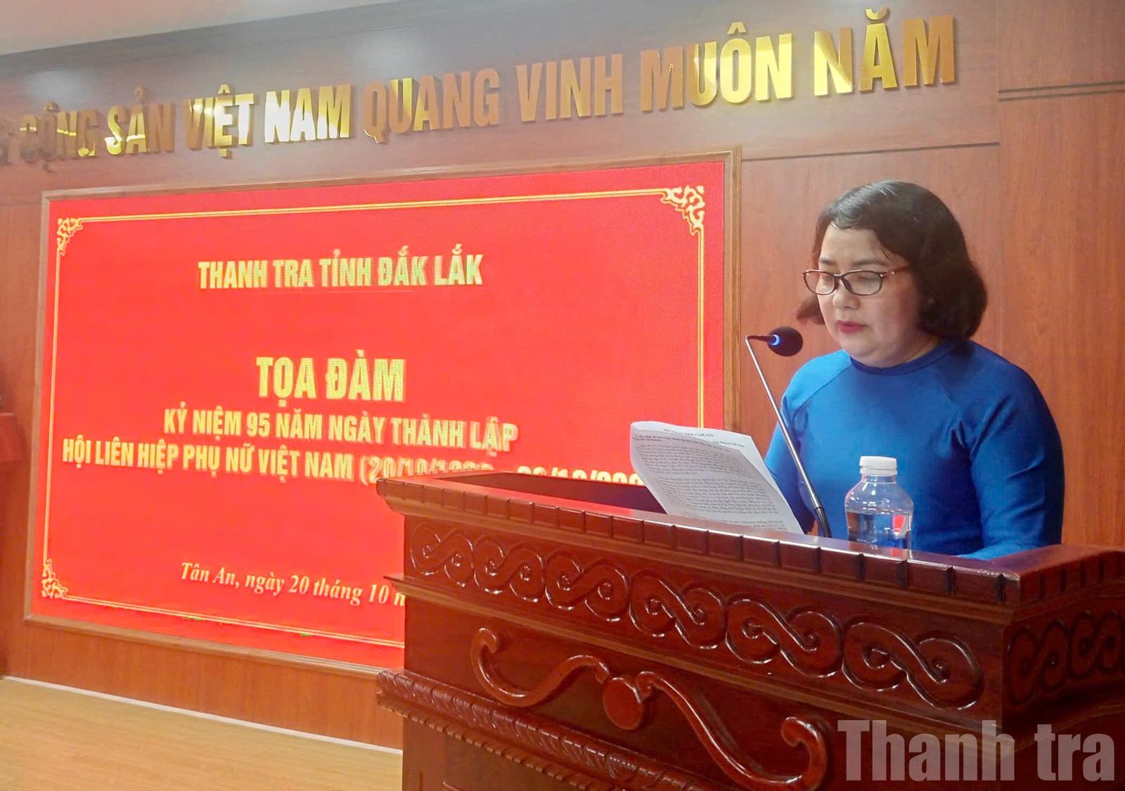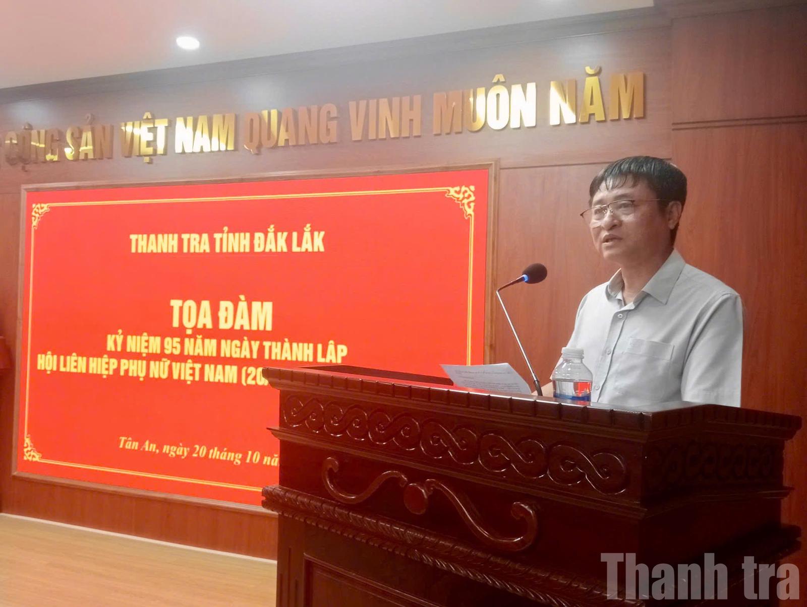 Phát biểu tại tọa đàm, ông Hồ Duy Thành - Chánh Thanh tra tỉnh Đắk Lắk đã gửi lời chúc mừng nồng nhiệt nhất, khẳng định vai trò, vị thế to lớn của người phụ nữ trong lịch sử dân tộc và trong công cuộc xây dựng, bảo vệ Tổ quốc.