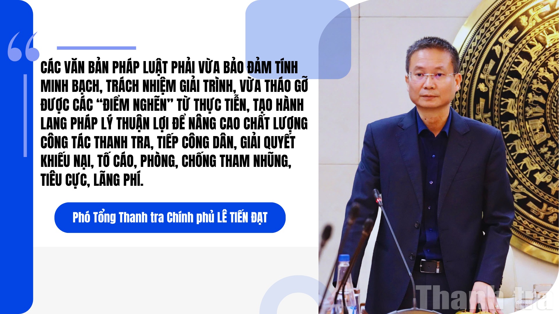 Phó Tổng Thanh tra Chính phủ Lê Tiến Đạt nhiều lần nhấn mạnh: “Các văn bản pháp luật phải vừa bảo đảm tính minh bạch, trách nhiệm giải trình, vừa tháo gỡ được các ‘điểm nghẽn’ từ thực tiễn, tạo hành lang pháp lý thuận lợi để nâng cao chất lượng công tác thanh tra, tiếp công dân, giải quyết khiếu nại, tố cáo, phòng, chống tham nhũng, tiêu cực, lãng phí.”