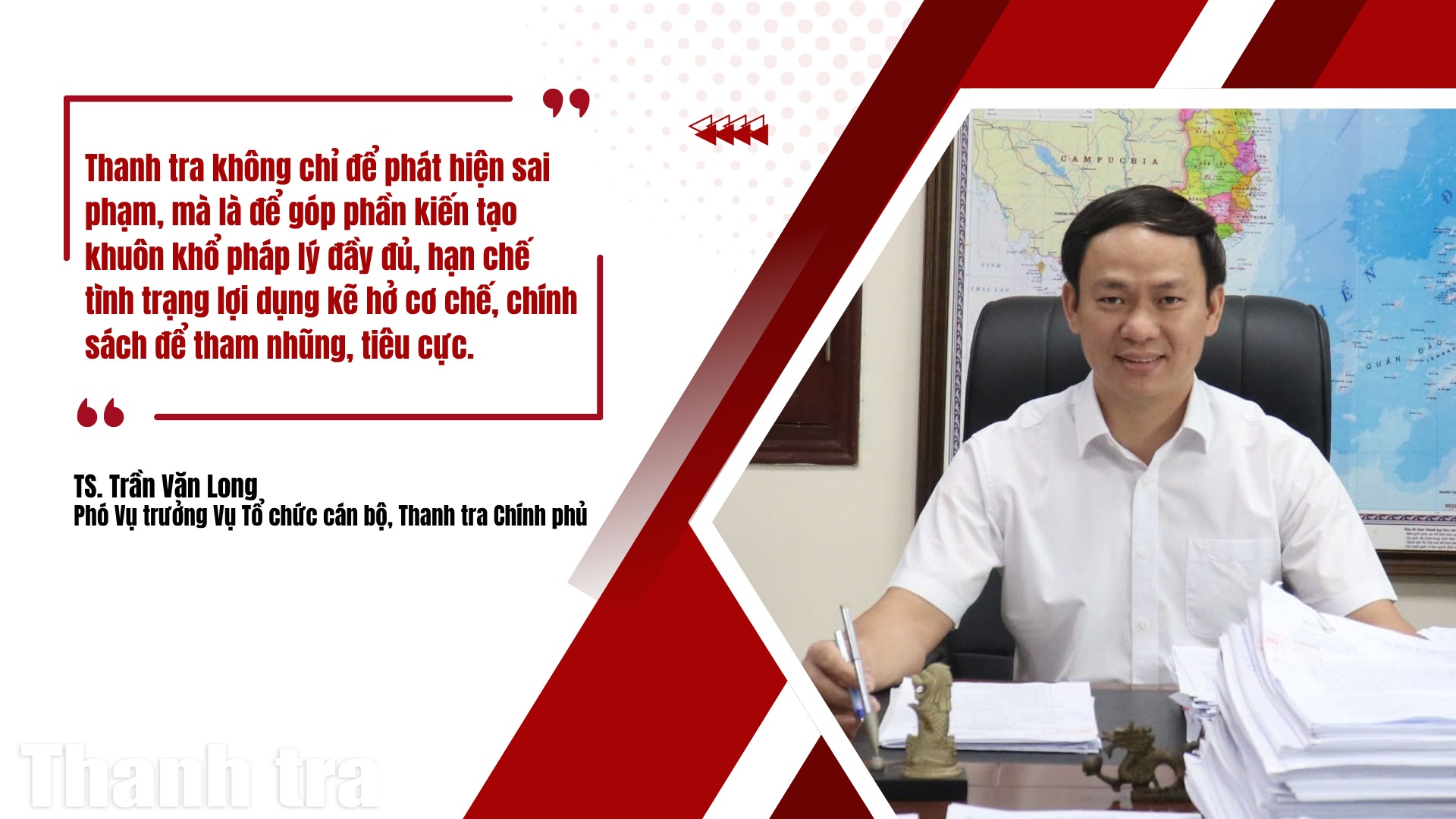 TS. Trần Văn Long cũng cho rằng, việc hoàn thiện cơ chế, chính sách là mục đích hàng đầu của công tác thanh tra, thể hiện vai trò của thanh tra trong quản lý Nhà nước. “Thanh tra không chỉ để phát hiện sai phạm, mà là để góp phần kiến tạo khuôn khổ pháp lý đầy đủ, hạn chế tình trạng lợi dụng kẽ hở cơ chế, chính sách để tham nhũng, tiêu cực,” ông Long nhấn mạnh.