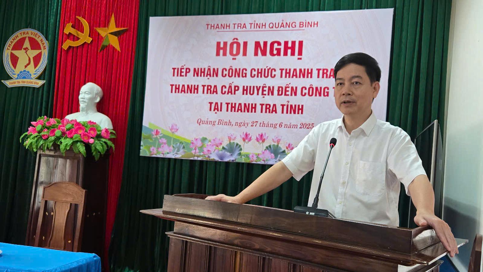 Phát biểu khai mạc hội nghị, Chánh Thanh tra tỉnh Quảng Bình Lê Công Hữu khẳng định, việc tổ chức Hội nghị tiếp nhận công chức và bàn giao công việc nhằm vận hành bộ máy thanh tra theo mô hình mới, thống nhất toàn tỉnh. Đây là bước cụ thể hóa Nghị quyết Trung ương về đổi mới tổ chức bộ máy hệ thống chính trị, đồng thời chuẩn bị cho việc chính thức sáp nhập tỉnh, thành lập Thanh tra tỉnh Quảng Trị mới - đơn vị được sáp nhập từ Thanh tra 2 tỉnh Quảng Bình và Quảng Trị, sẽ hoạt động từ ngày 1/7/2025.