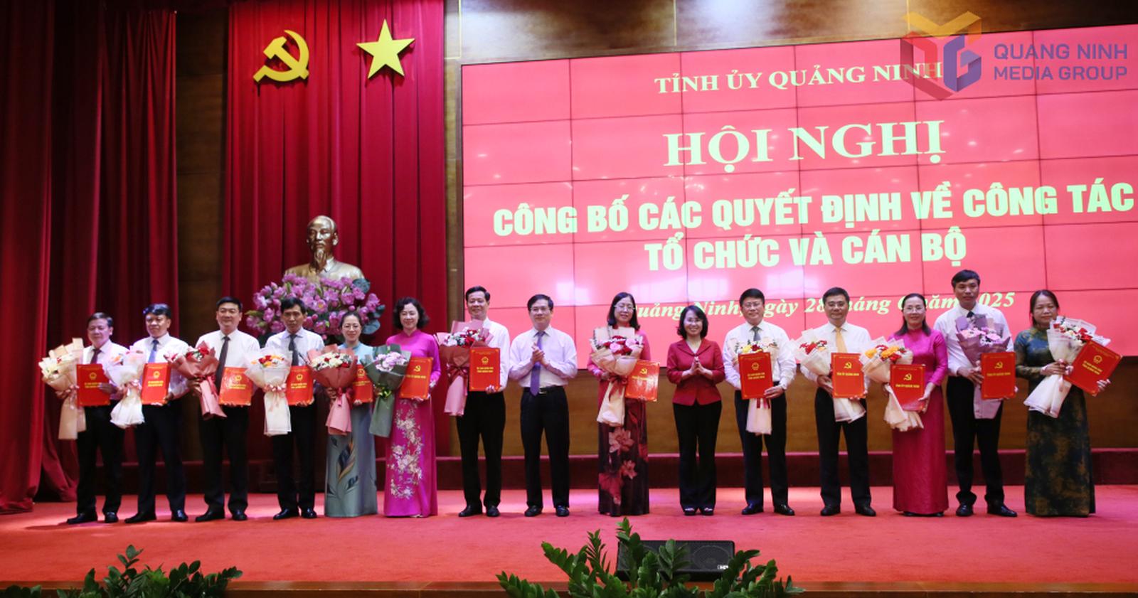 Tiếp đó, Ban Tổ chức Tỉnh ủy đã công bố quyết định của Ban Thường vụ Tỉnh ủy về điều động, phân công và bổ nhiệm có thời hạn các đồng chí: Nguyễn Văn Công, Bí thư Thành ủy Đông Triều được bổ nhiệm giữ chức vụ Phó Trưởng Ban Nội chính Tỉnh ủy; Phạm Xuân Đài, Trưởng Ban Quản lý khu kinh tế giữ chức vụ Phó Trưởng Ban Tuyên giáo và Dân vận Tỉnh ủy; Vũ Thị Mai Anh, Phó Bí thư Thành ủy, Chủ tịch HĐND TP Hạ Long giữ chức vụ Phó Trưởng Ban Tổ chức Tỉnh ủy; Nguyễn Mạnh Hùng, Ủy viên Ủy ban Kiểm tra Tỉnh ủy giữ chức vụ Phó Chánh Văn phòng Tỉnh ủy.