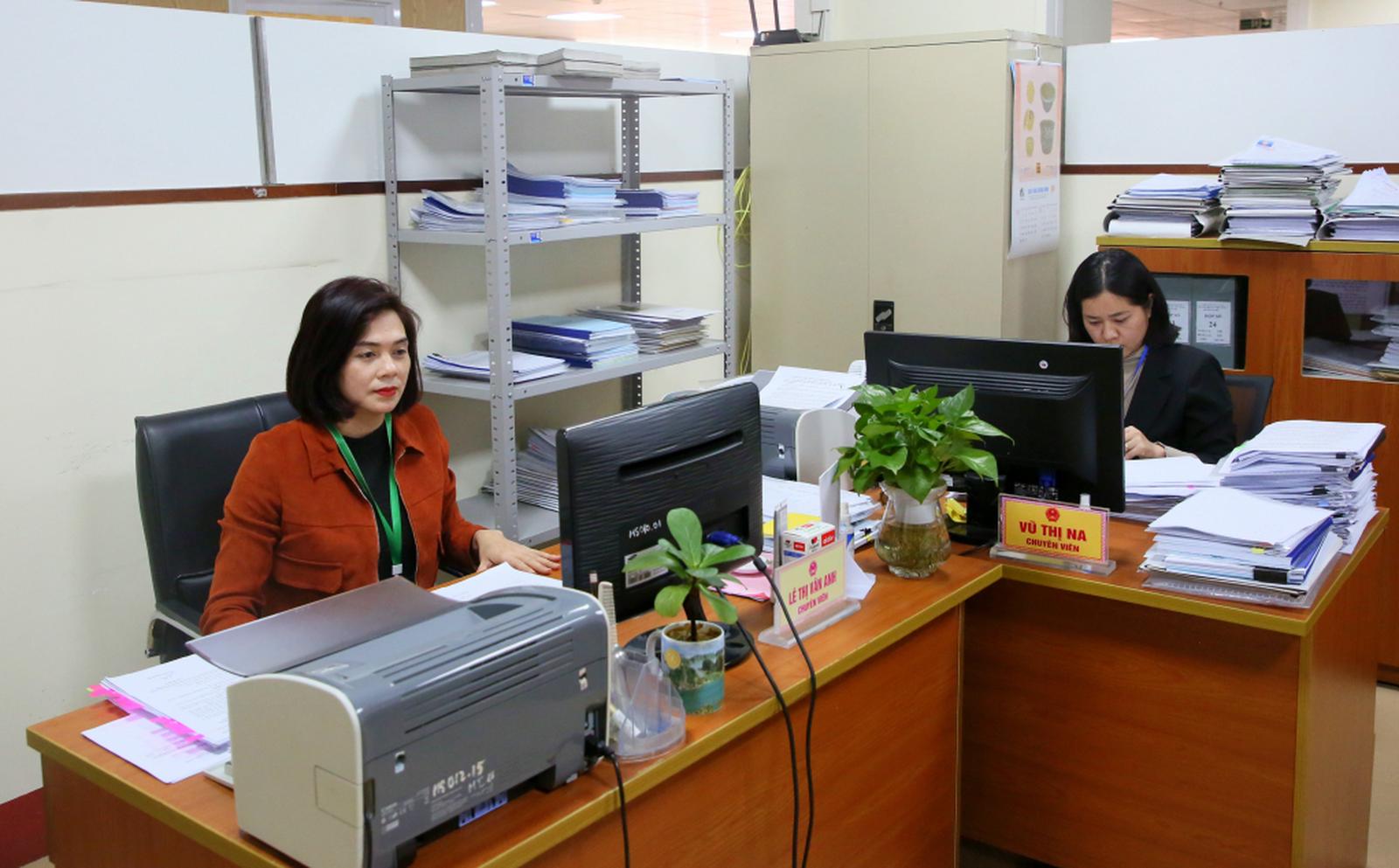Chuyên viên Sở Văn hóa và Thể thao tỉnh Quảng Ninh nghiêm túc thực hiện nhiệm vụ trong buổi chiều ngày 16/2/2024. Ảnh: TTTT