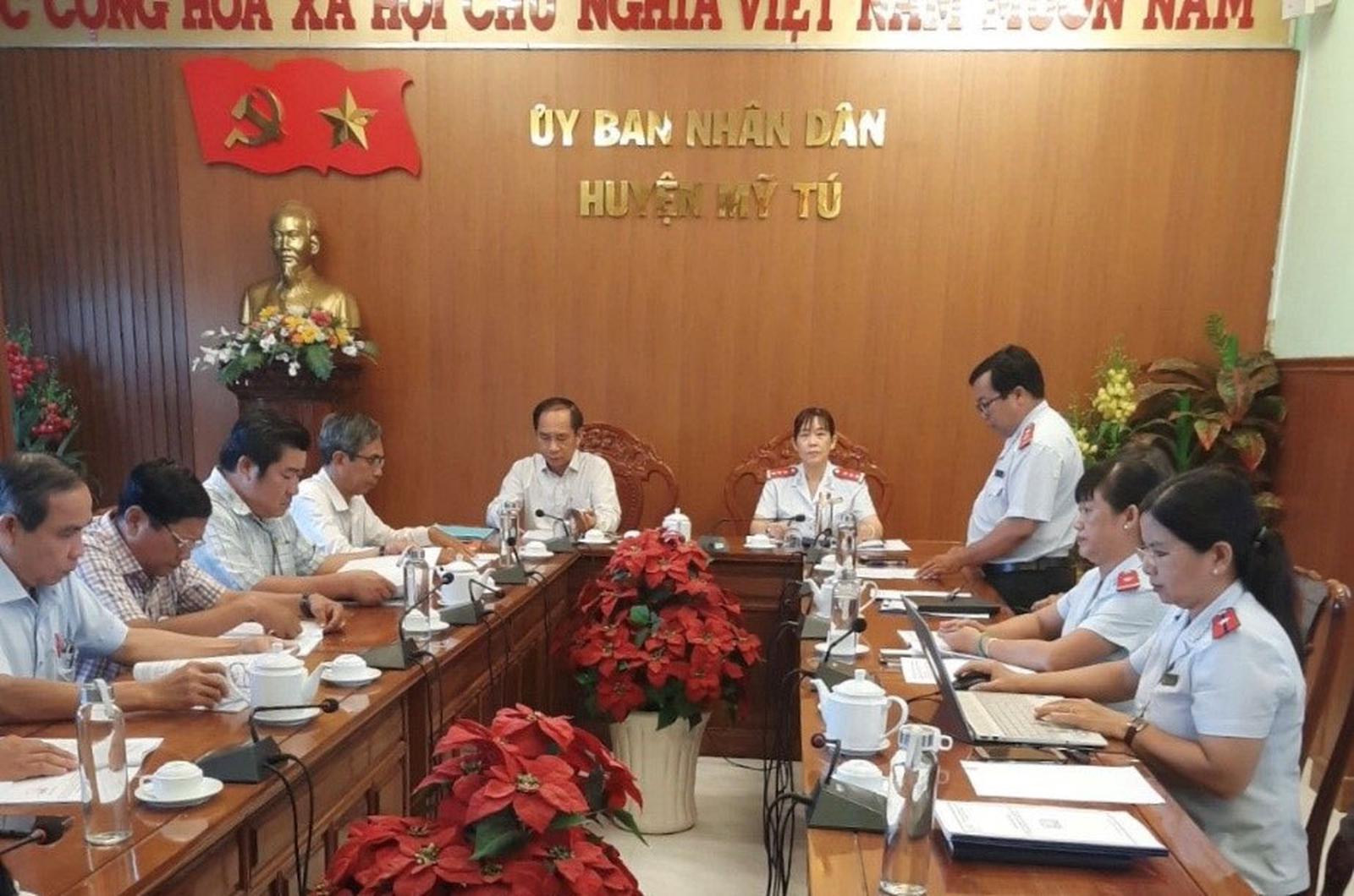 Thanh tra tỉnh Sóc Trăng công bố kết luận thanh tra về việc thực hiện chính sách, pháp luật tài chính tại UBND huyện Mỹ Tú. Ảnh: Thanh tra tỉnh Sóc Trăng