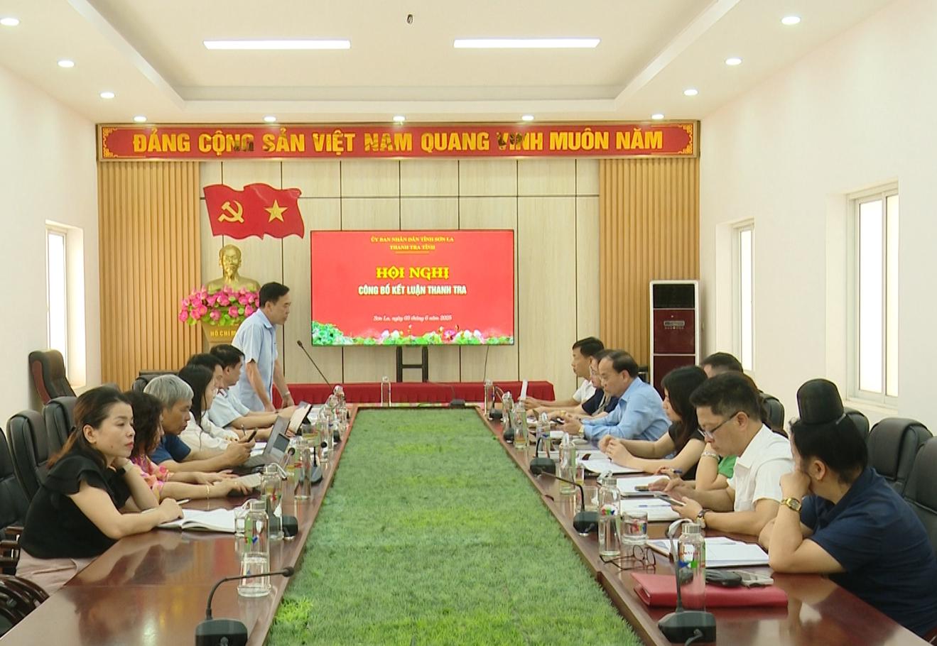 Thanh tra tỉnh Sơn La công bố kết luận thanh tra đối với Đài Phát thanh và Truyền hình tỉnh Sơn La. Ảnh: CTV