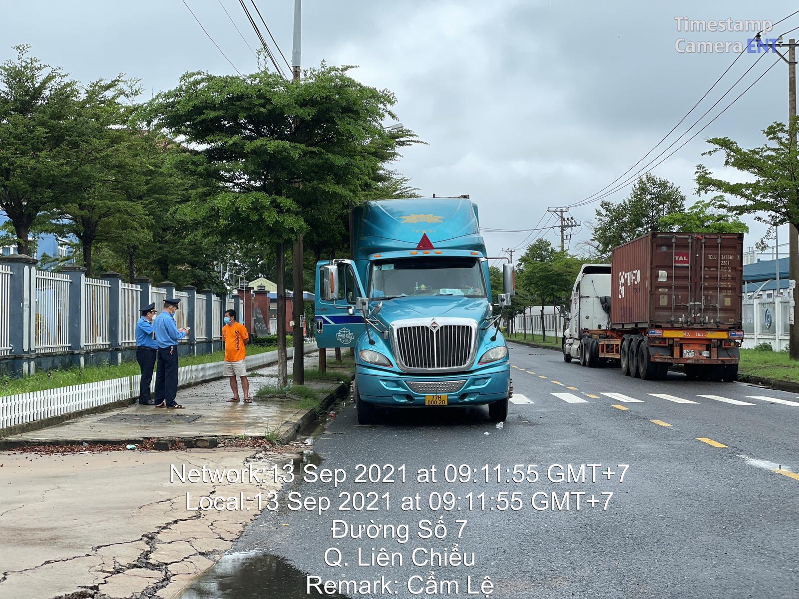 Kiểm tra phương tiện lưu thông tại Khu Công nghiệp Hoà Khánh (Liên Chiểu). Ảnh: P.T