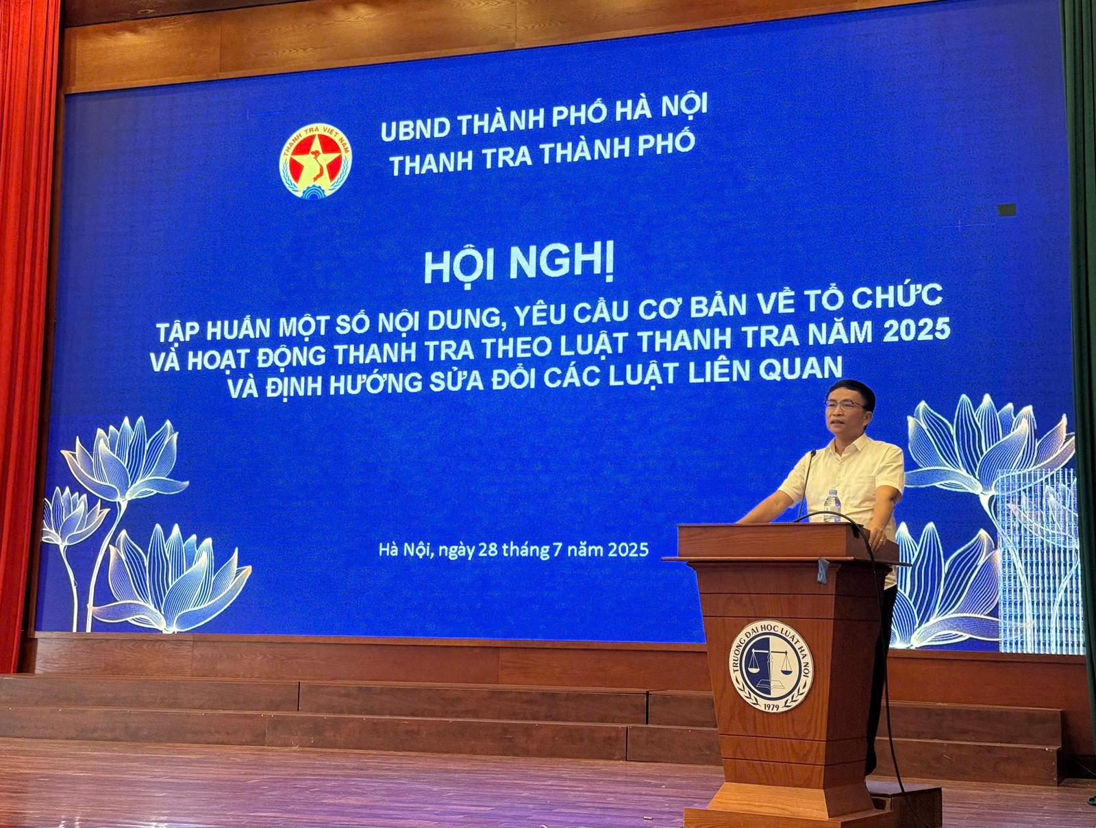 TS. Trần Đăng Vinh, Vụ trưởng Vụ Pháp chế, Thanh tra Chính phủ tại Hội nghị tập huấn Luật Thanh tra 2025 do Thanh tra TP Hà Nội tổ chức. Ảnh: HH