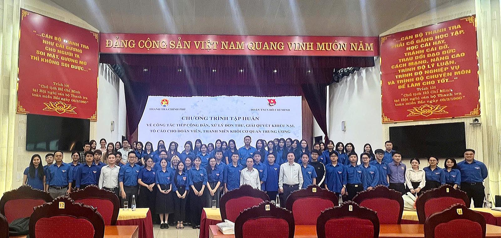 (Thanh tra) - Hưởng ứng ngày Pháp luật Việt Nam 9/11 và hướng tới chào mừng 79 năm Ngày truyền thống Ngành Thanh tra Việt Nam (23/11/1945 – 23/11/2024), ngày 19/11, Đoàn Thanh niên cơ quan Thanh tra Chính phủ tổ chức Chương trình “Tập huấn kỹ năng Tiếp công dân, xử lý đơn thư, giải quyết khiếu nại, tố cáo cho đoàn viên, thanh niên Khối các cơ quan Trung ương năm 2024” nhằm nâng cao ý thức trách nhiệm của đội ngũ cán bộ, công chức bảo đảm thực hiện nghiêm túc các quy định của pháp luật về công tác tiếp công dân (TCD), xử lý đơn thư và giải quyết khiếu nại, tố cáo (KNTC).