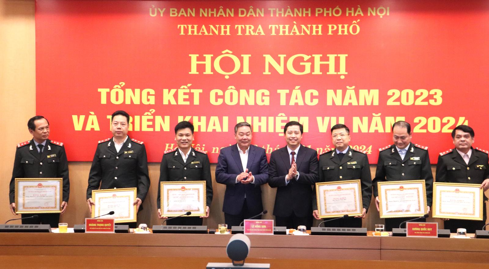 Thanh tra TP trao giấy khen cho các đơn vị hoàn thành xuất sắc các nhiệm vụ năm 2023. Ảnh: TH