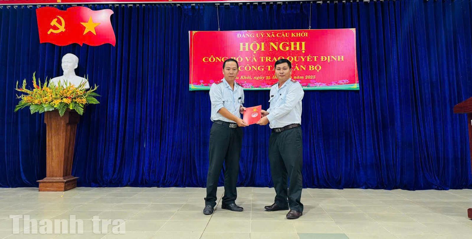 (Thanh tra) - Ngày 31/10, Thanh tra tỉnh Tây Ninh trao quyết định biệt phái 2 công chức của thanh tra tỉnh là ông Dương Thành Duy và bà Phạm Thanh Sum, Thanh tra viên các phòng nghiệp vụ, đến công tác tại Đảng ủy xã Cầu Khởi và UBND xã Nhơn Ninh.