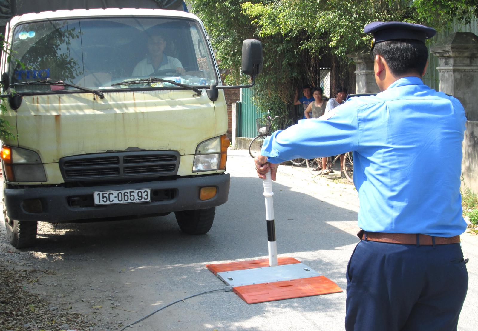 Lực lượng liên ngành Thái Bình kiểm tra xe có dấu hiệu vi phạm. Ảnh: Trọng Tài