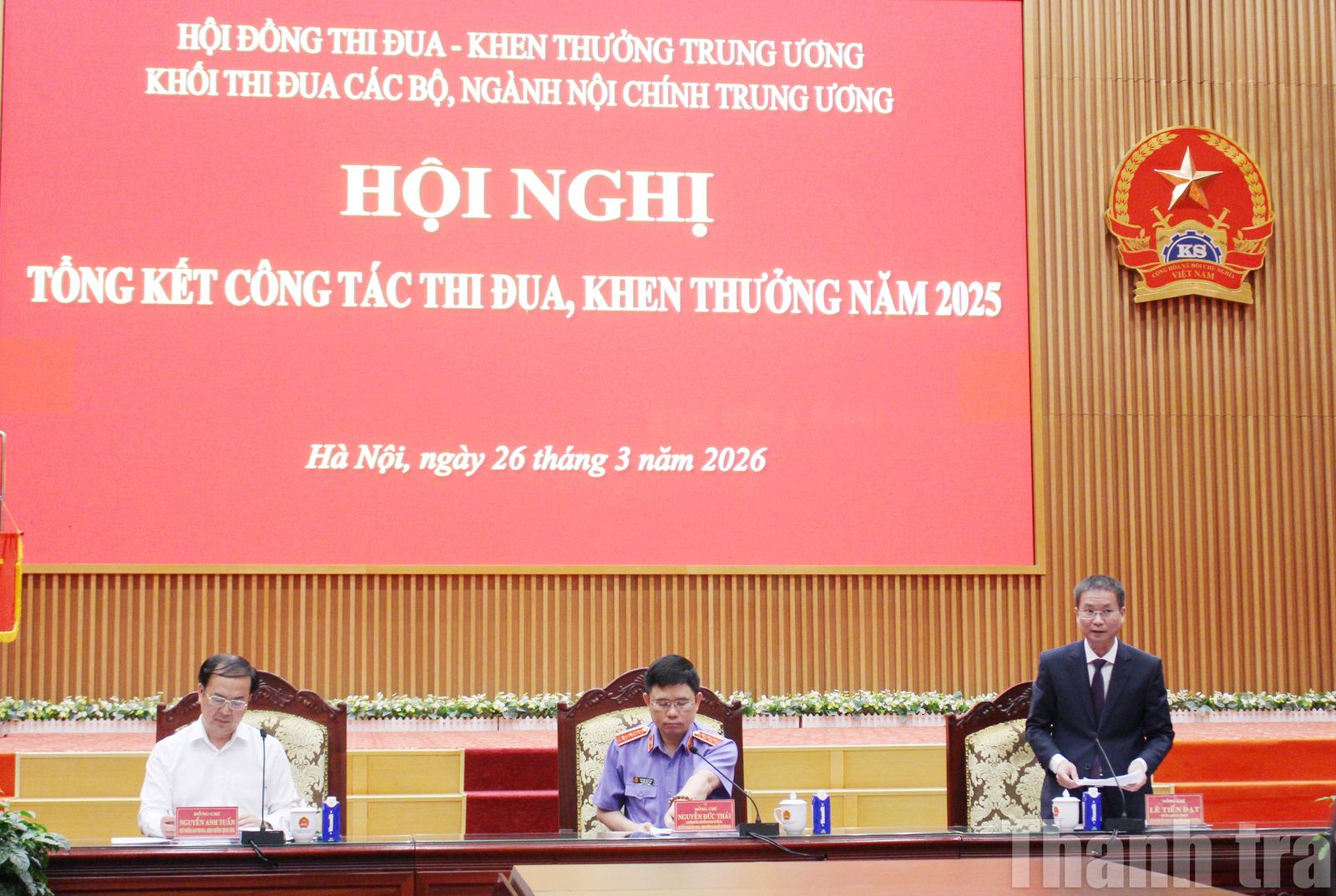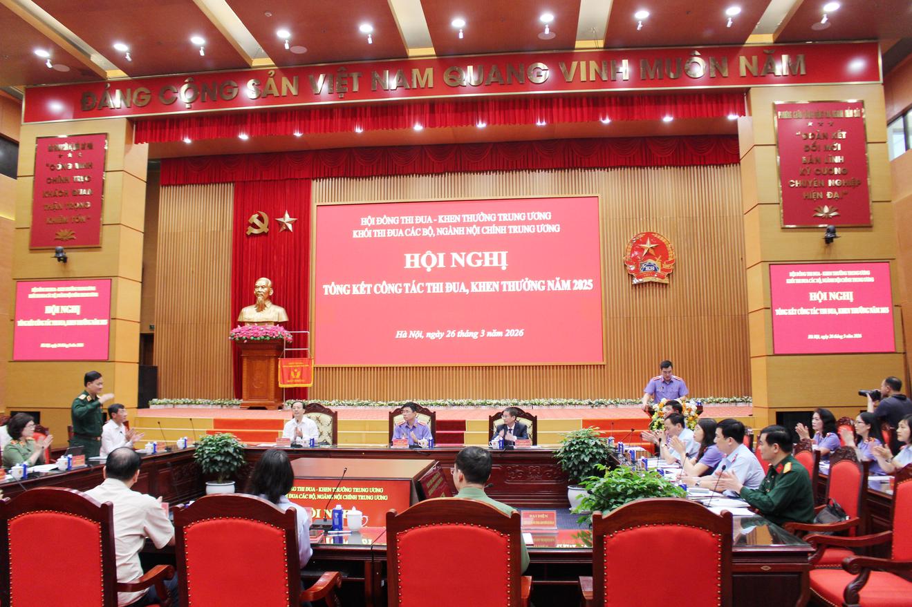 (Thanh tra) - Chiều 26/3, Khối thi đua các bộ, ngành Nội chính Trung ương tổ chức Hội nghị tổng kết công tác thi đua, khen thưởng năm 2025.